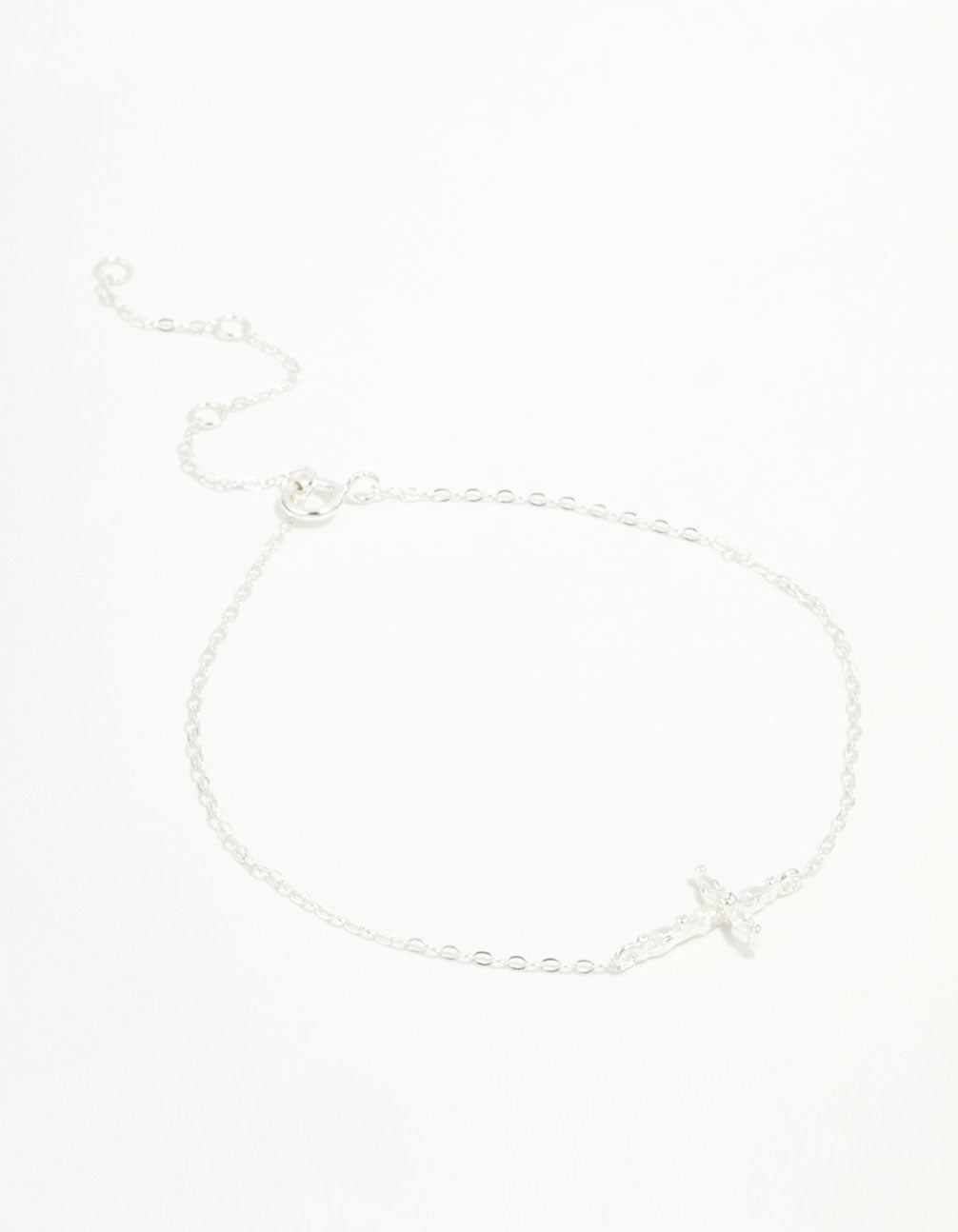 Sterling Silver Cubic Zirconia Horizontal Cross Bracelet Sterling Silver Cubic Zirconia Horizontal Cross Bracelet Sterling Silver Cubic Zirconia Horizontal Cross Bracelet
