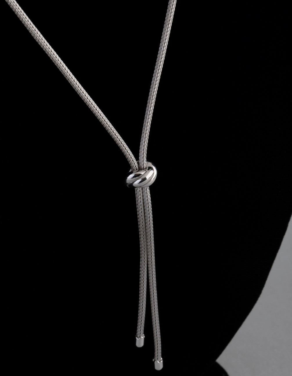 Black Label Collection presents quality jewellery you’ll live in and love always. Made from premium materials with style accents that transcend trends, Black Label is Lovisa at its most elevated. This gorgeous necklace is a perfect harmony of classic and trendsetting. It's made from sterling silver and features an elegant mesh chain with a lariat-style neckline.