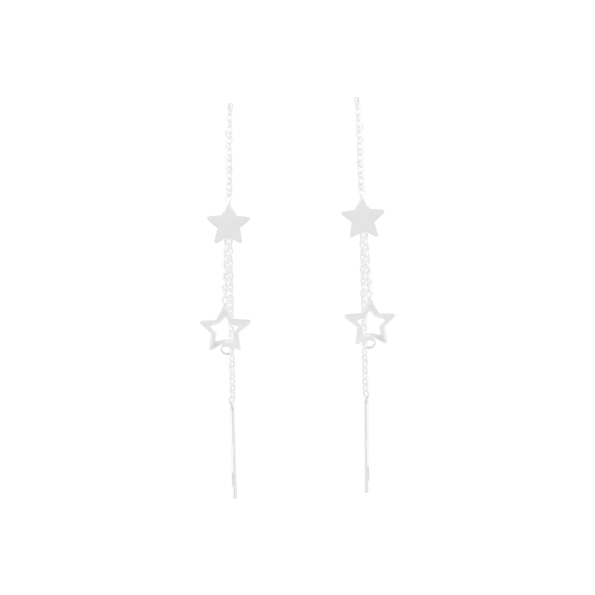 These thread earrings offer a sterling silver tone finished with a fun set of stars.