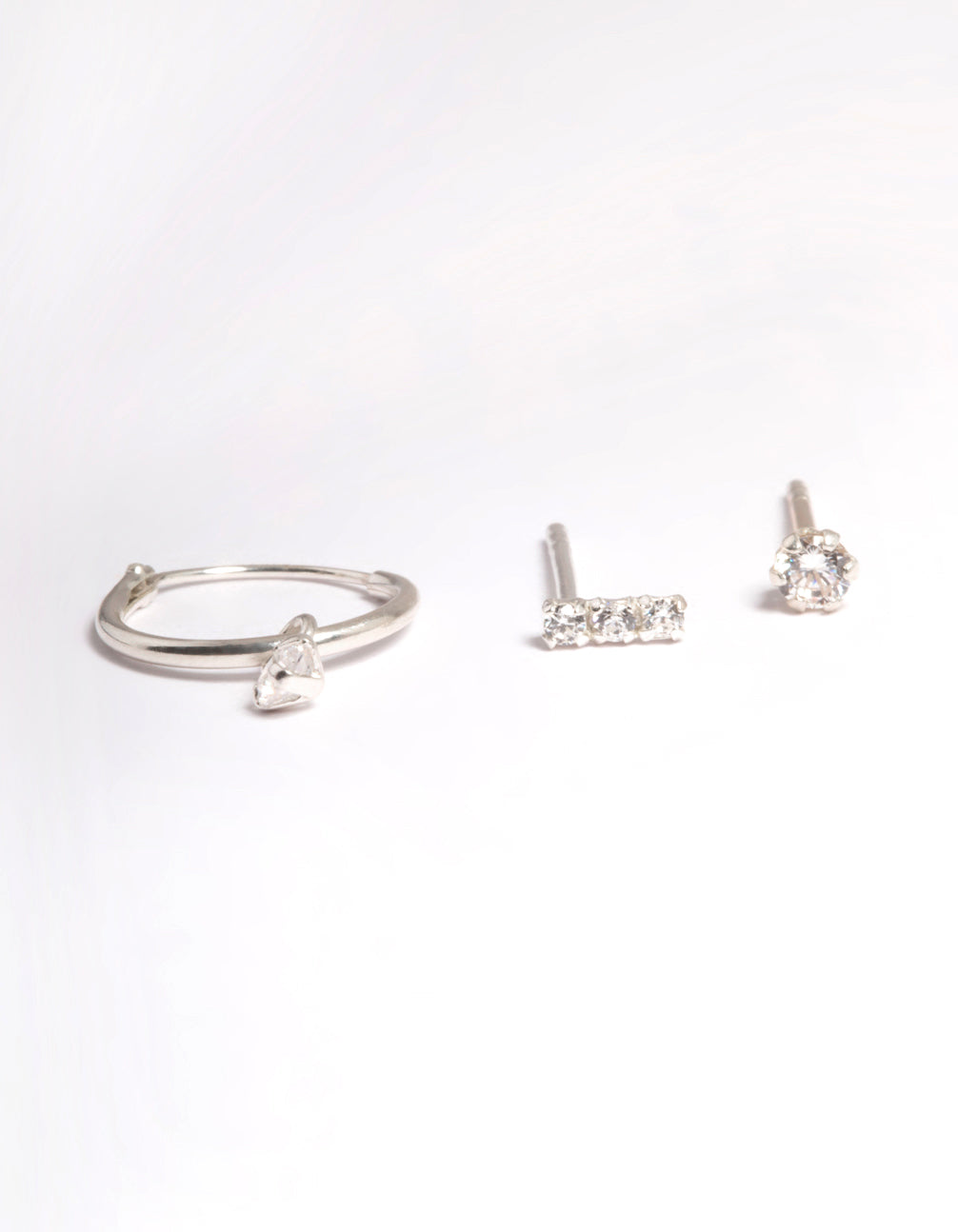 Sterling Silver Cubic Zirconia Dangle Curve Earrings Pack