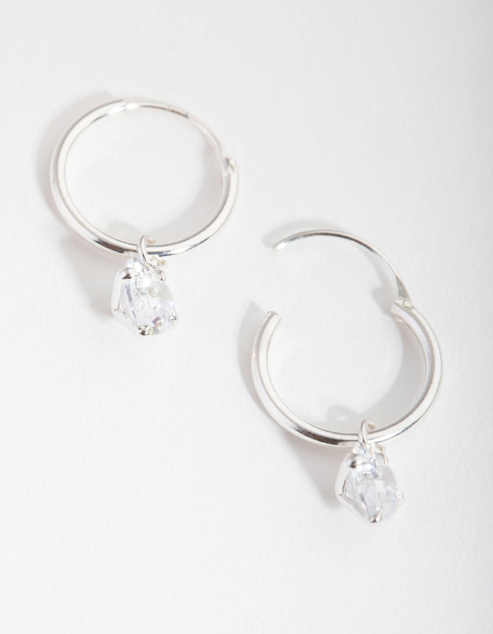 Invest in quality pieces made with sterling silver. These dainty hoops feature a lovely heart charm with cubic zirconia embellishments. Cubic zirconia are stones cut to resemble the colour and clarity of true diamonds. Pretty and dianty, incorporate these hoops into your daily edits.