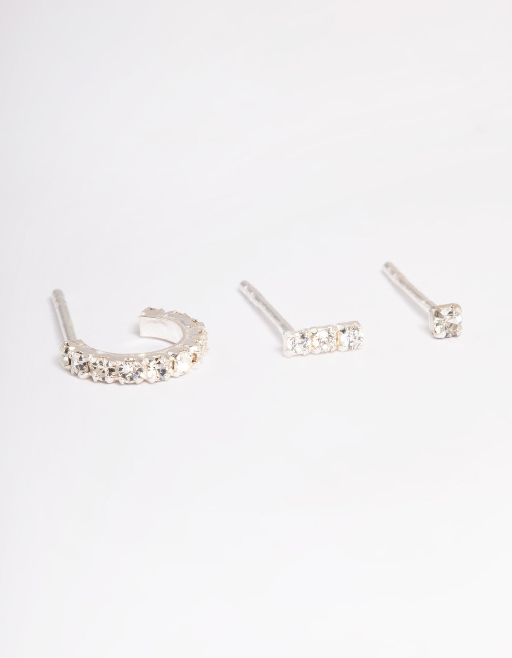Sterling Silver Cubic Zirconia Curve Earring Stud Pack