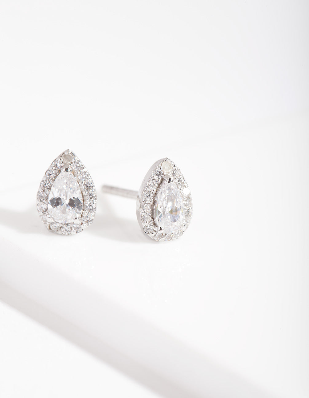 Silver Cubic Zirconia Teardrop Halo Stud Earrings