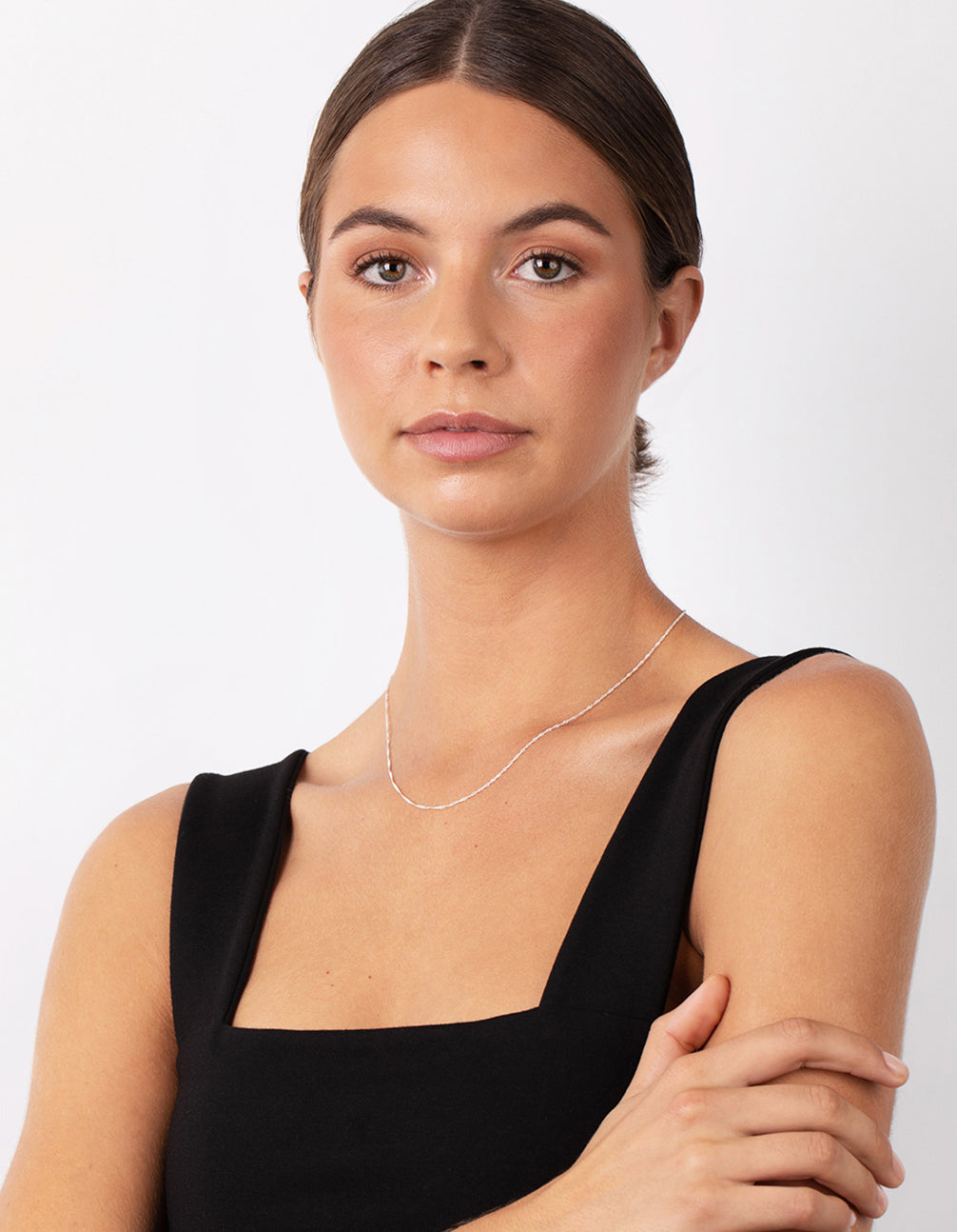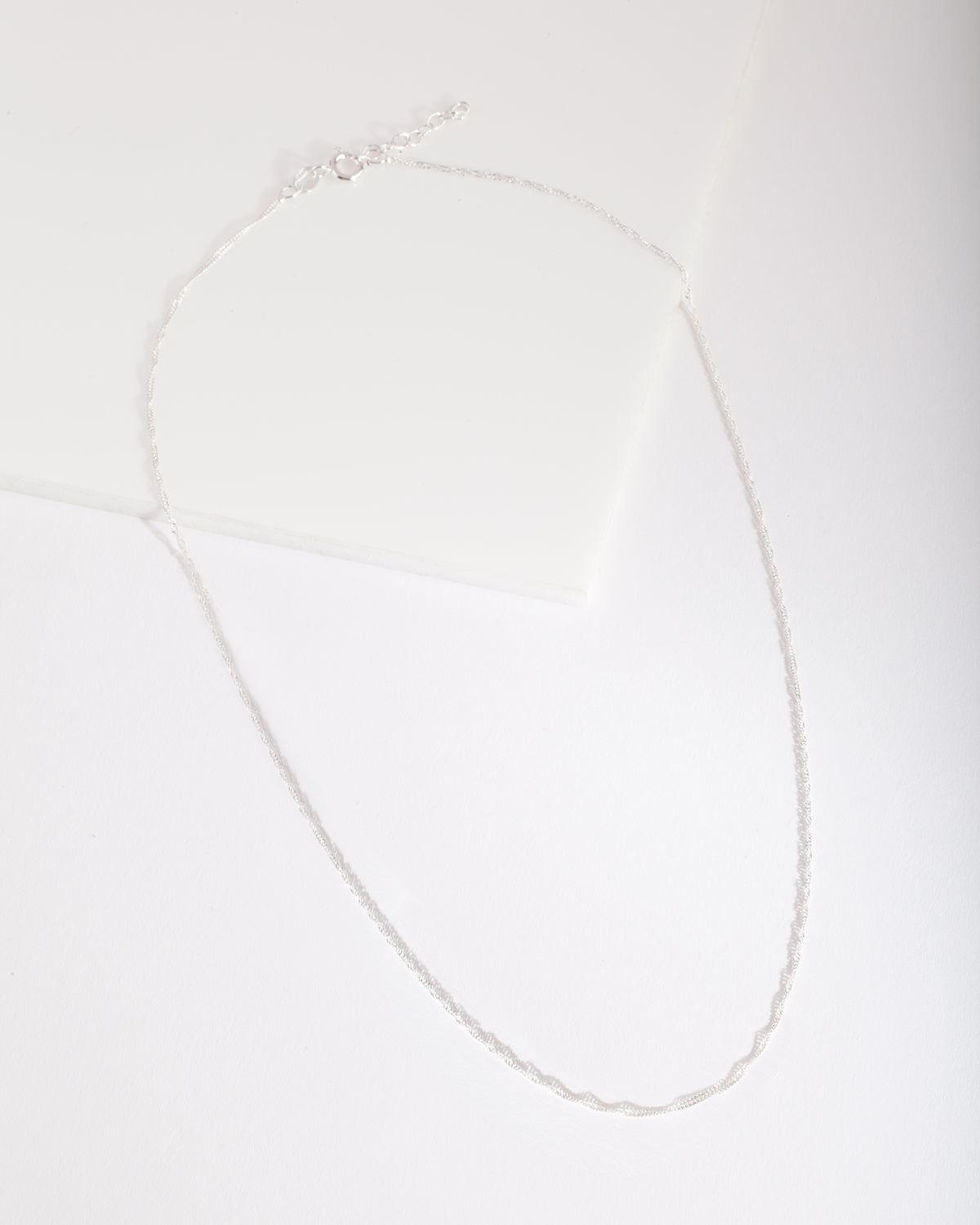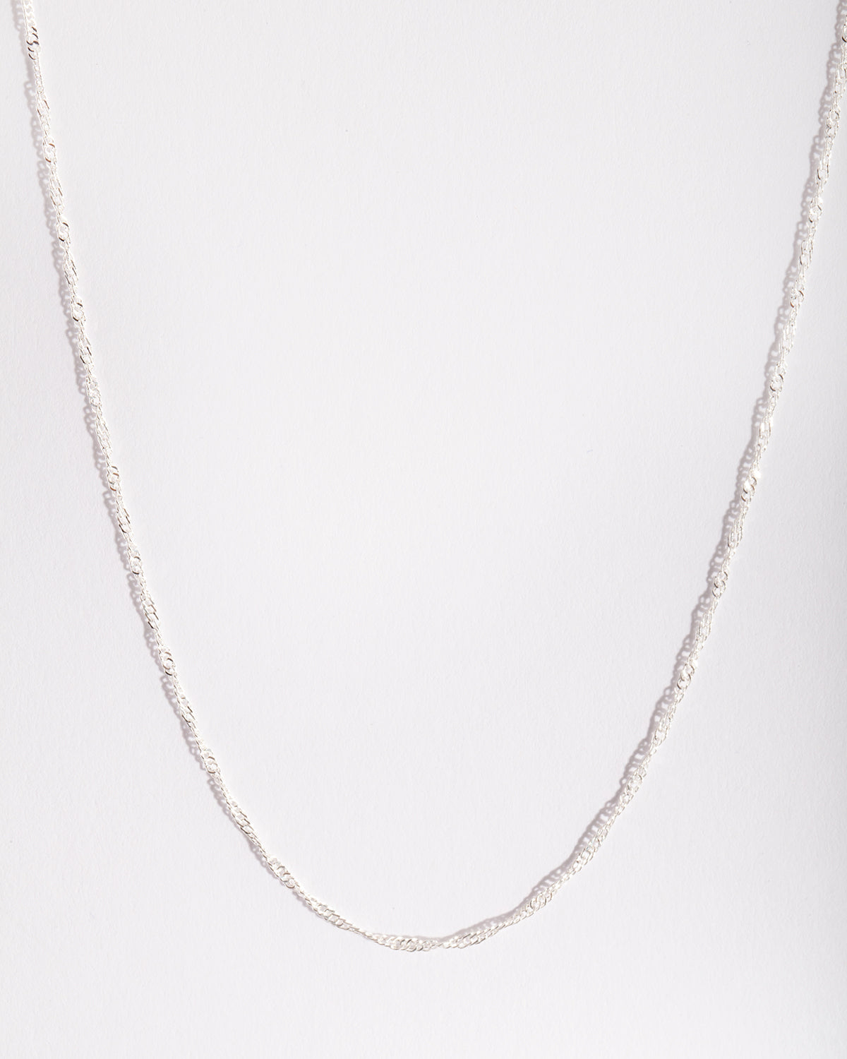 A stand-out choice in Italian made sterling silver, this fine Singapore chain necklace will adorn any outfit. Perfect on its own, but equally ideal when layered, this versatile chain will complete any ensemble.