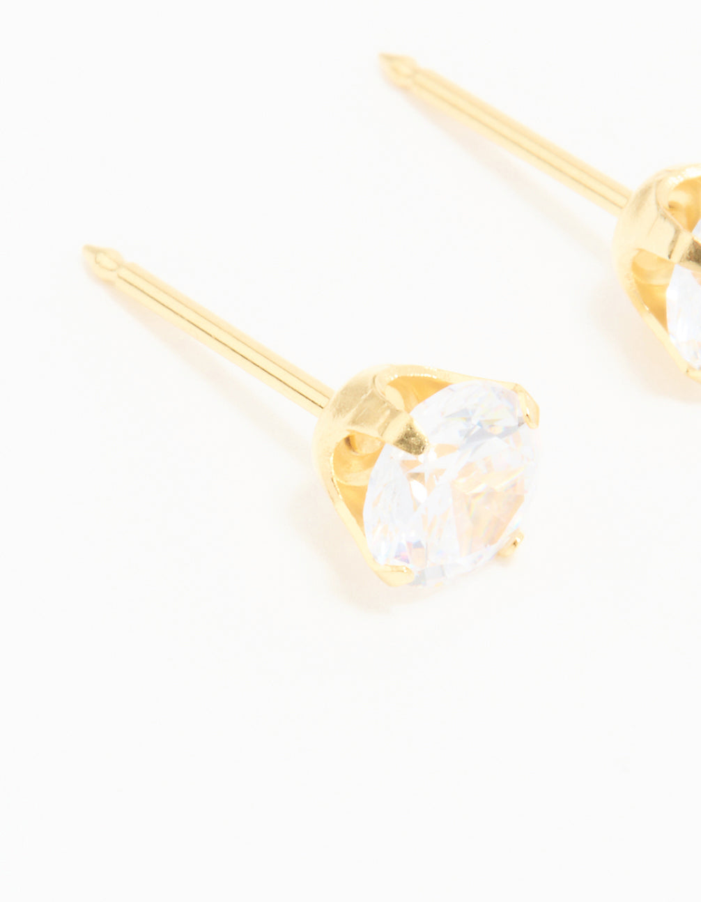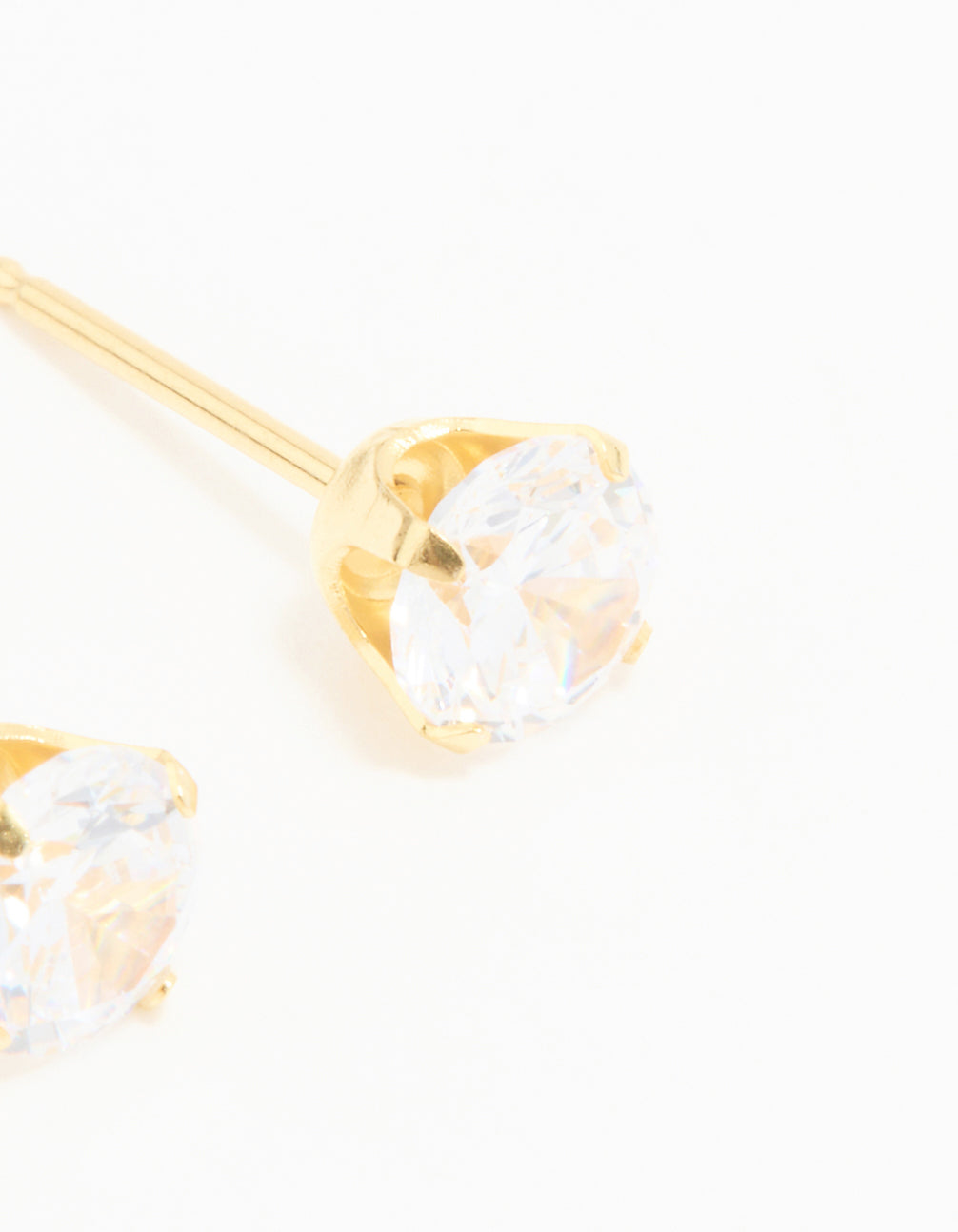 24KT Gold Plated Surgical Stainless Steel 5MM Cubic Zirconia Piercing Stud