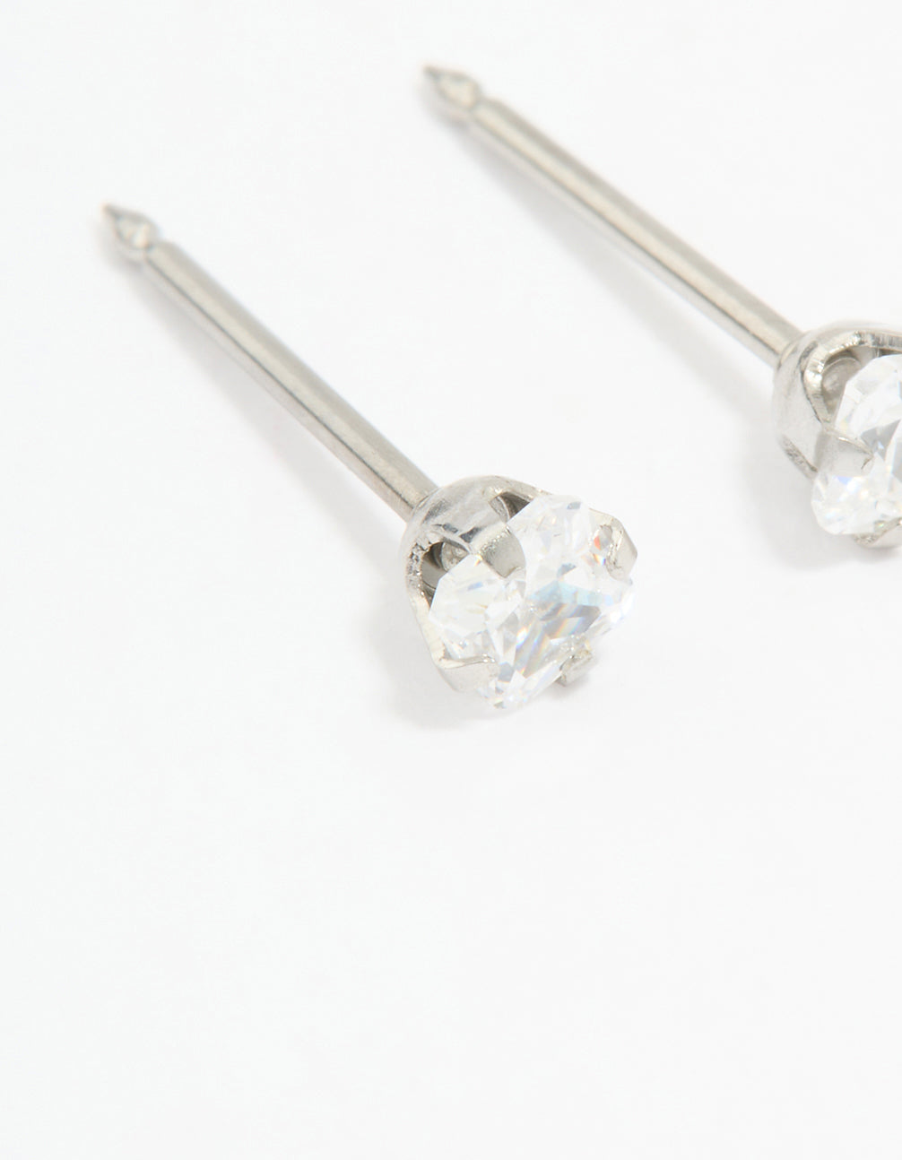 Surgical Stainless Steel 3X3MM Cubic Zirconia Princess Cut Piercing Stud