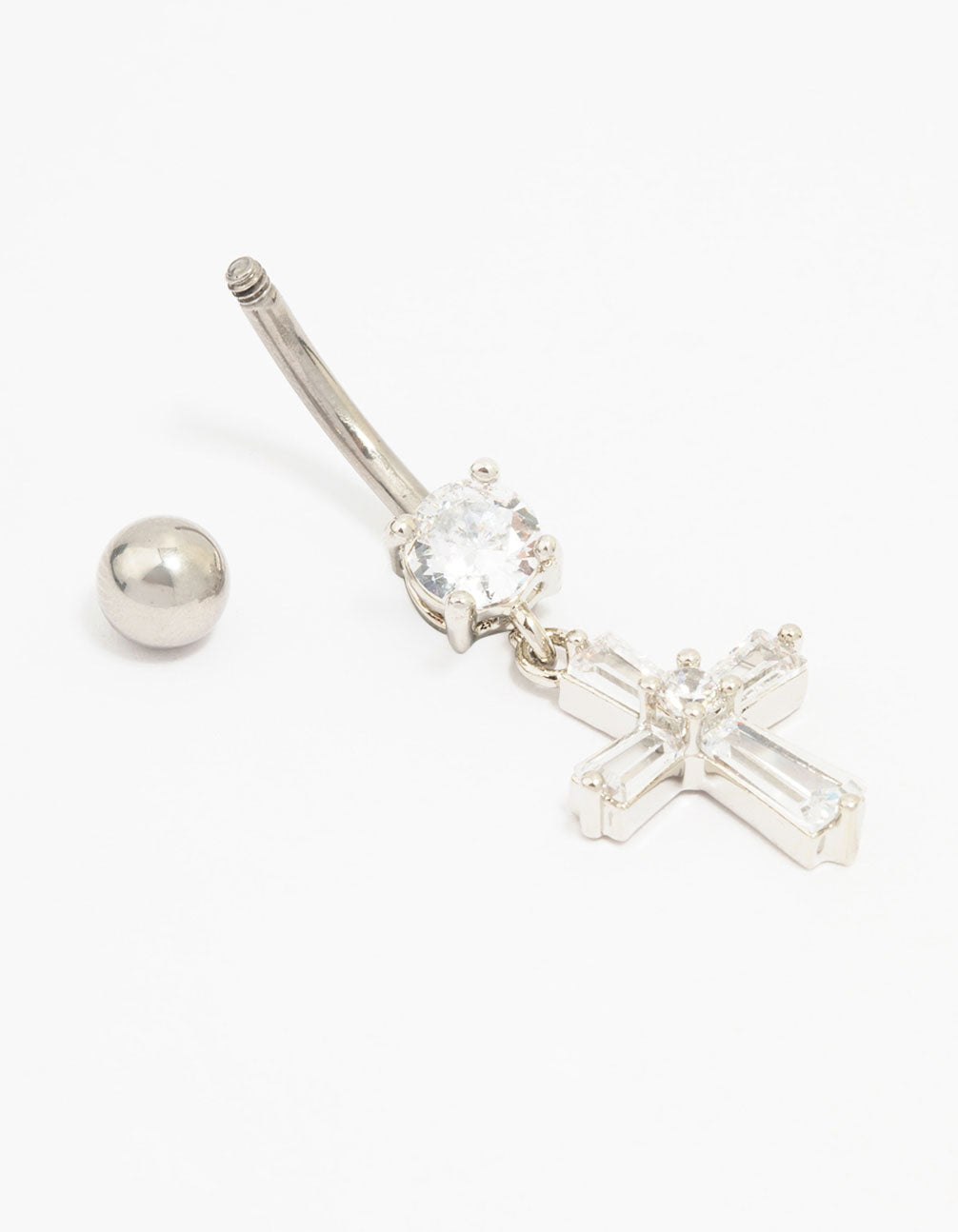 Customise your look with our selection of premium, genuine surgical steel piercing jewellery. This belly piercing features a baguette-cut, cross design. Perfect for adding detail to your look!