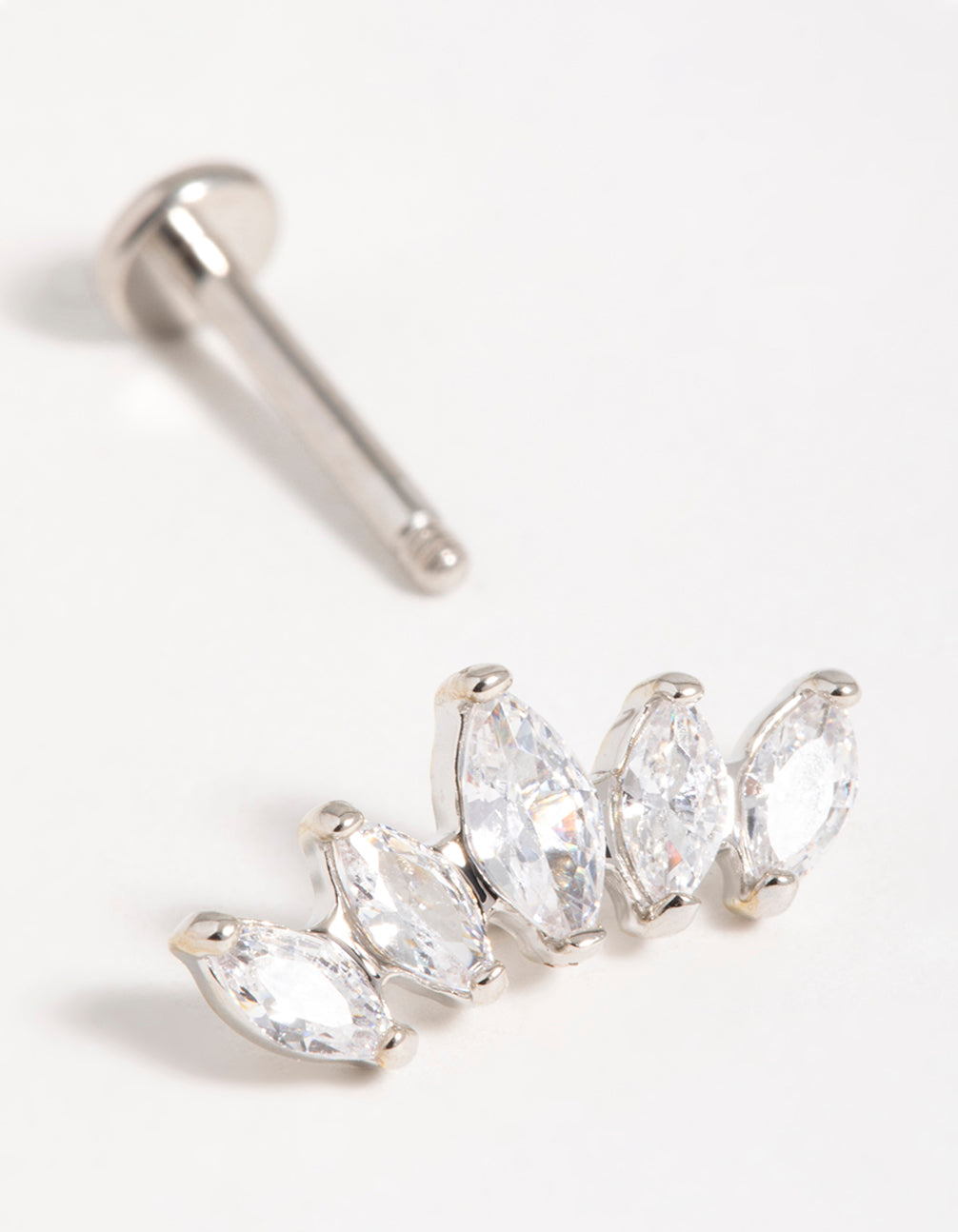 Add a little sparkle to your piercings with this Surgical Steel Diamante Fan Flat Back Stud. This sleek and stylish piece features a delicate fan design with five shimmering diamantes, making it the perfect blend of elegance and edge. Crafted from durable surgical steel, this flat back earring is ideal for sensitive skin and comfortable enough for all-day wear.
