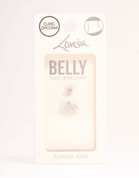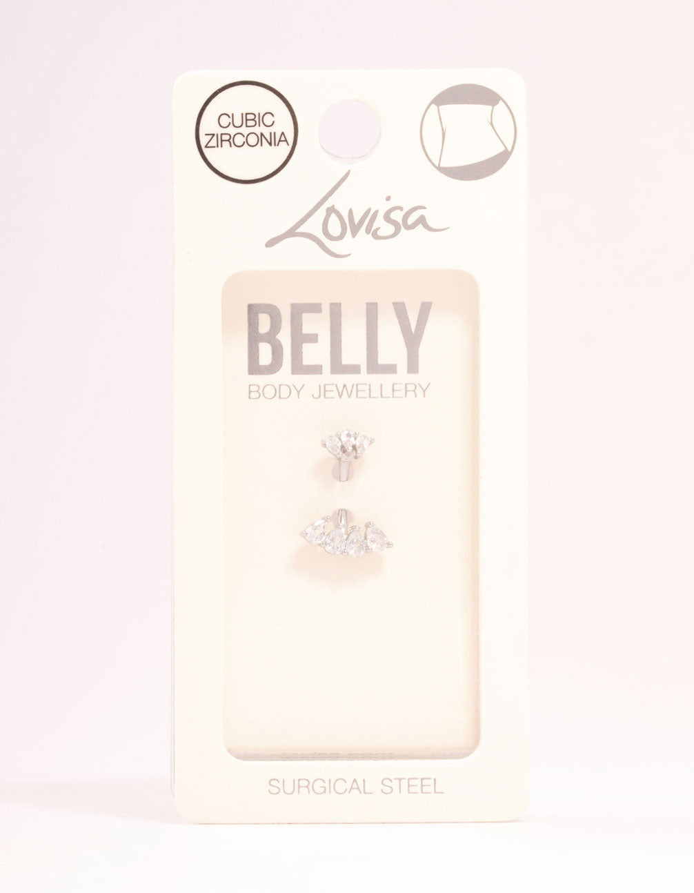 Surgical Steel Double Pear Cubic Zirconia Fan Belly Bar