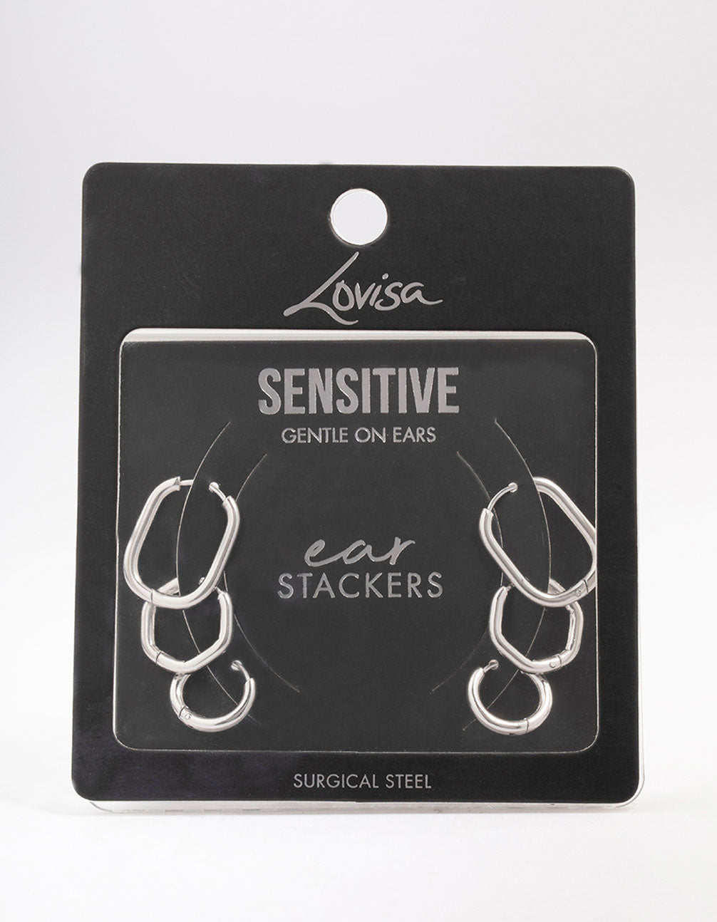 Surgical Steel Geometric Modern Hoop Earring 3-Pack