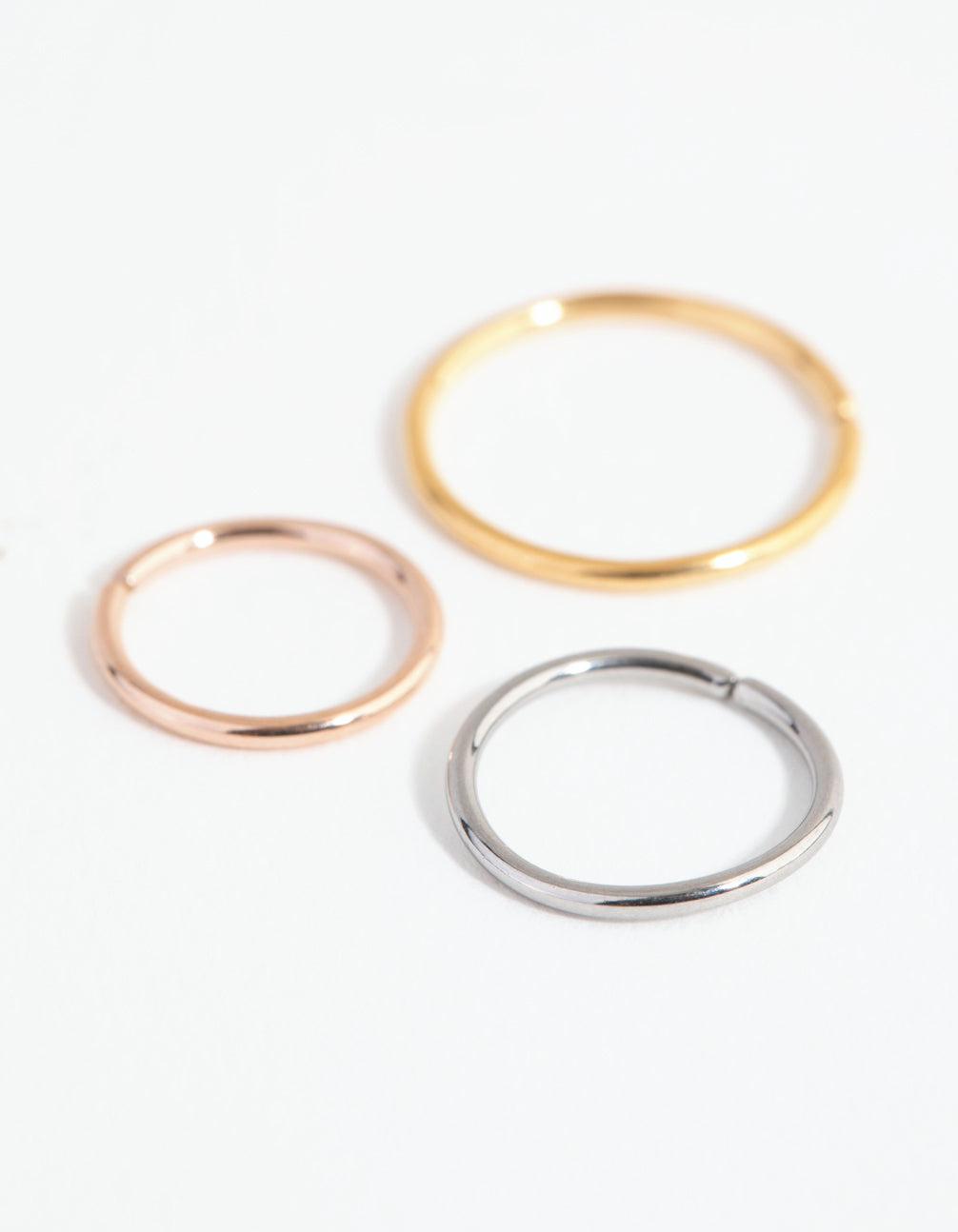 Express your individuality with Lovisa body jewellery! This set includes six pieces which are meant to be worn in nose piercings. They're made from surgical steel. The set includes three studs and three rings. Each is either gold, rose-gold or silver toned and the studs feature dainty, diamante embellishments. Gauge measurements are 20G/0.8mm.