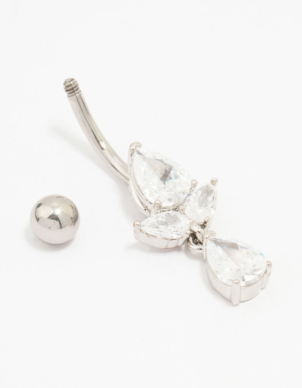 Customise your look with our selection of premium, genuine surgical steel piercing jewellery. This belly piercing features a collection of pear-shaped crystals, perfect for adding a luxe addition to your look.
