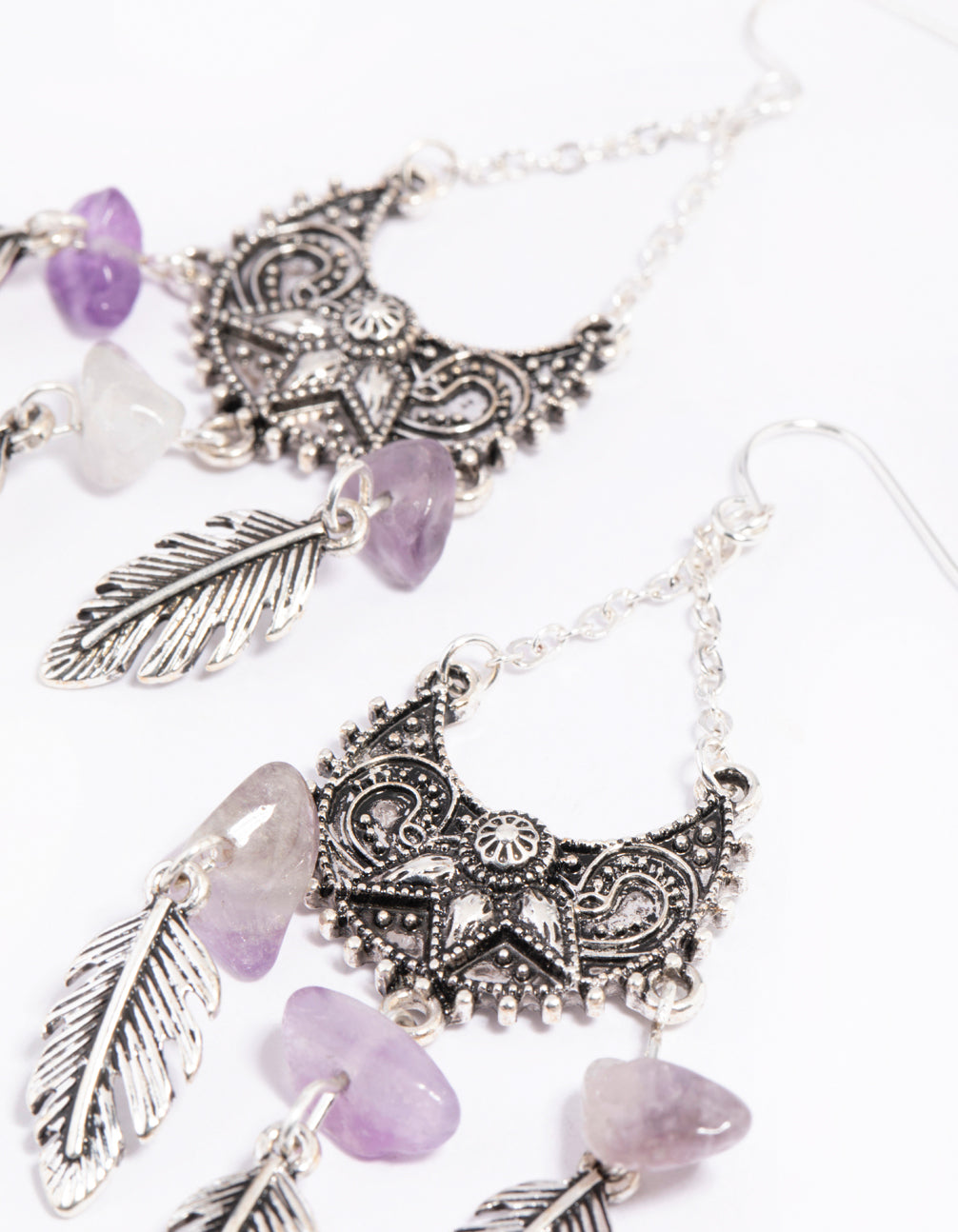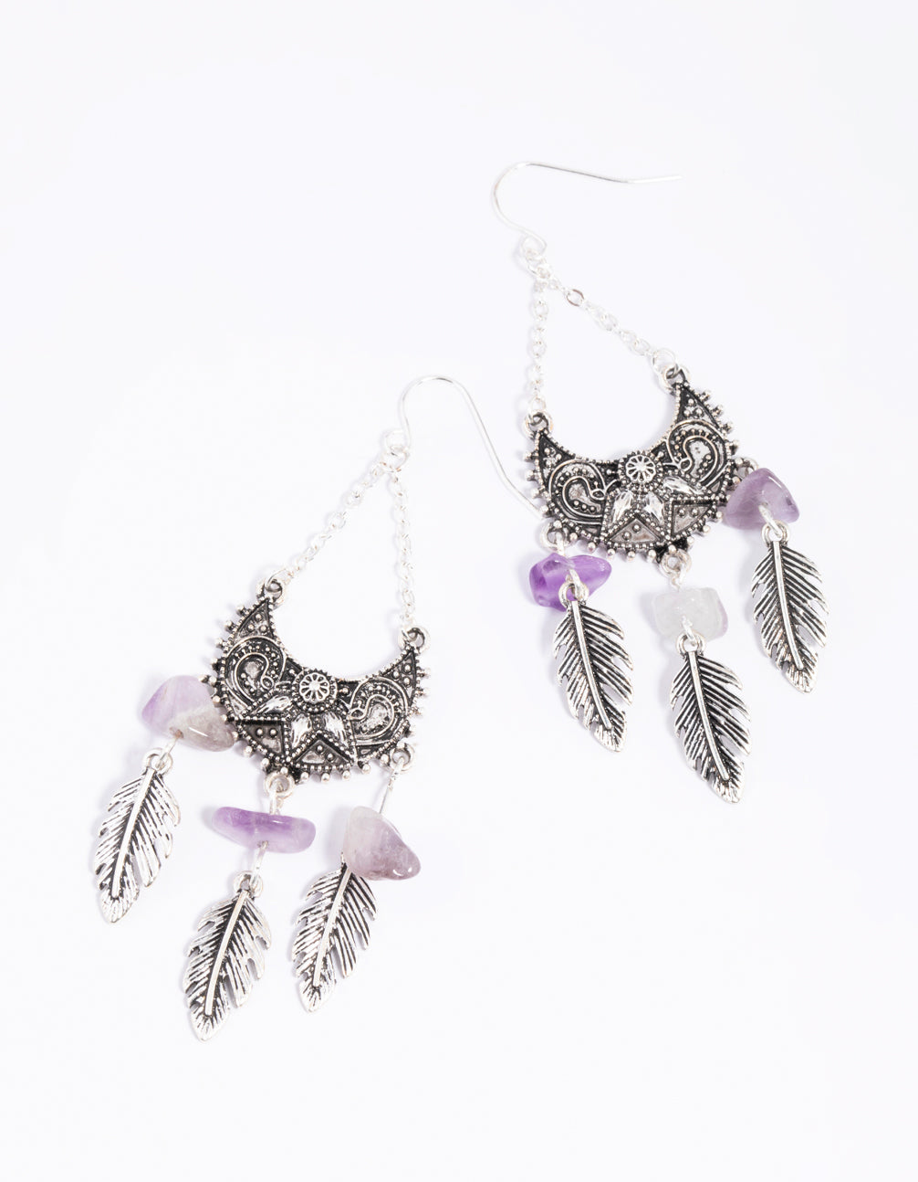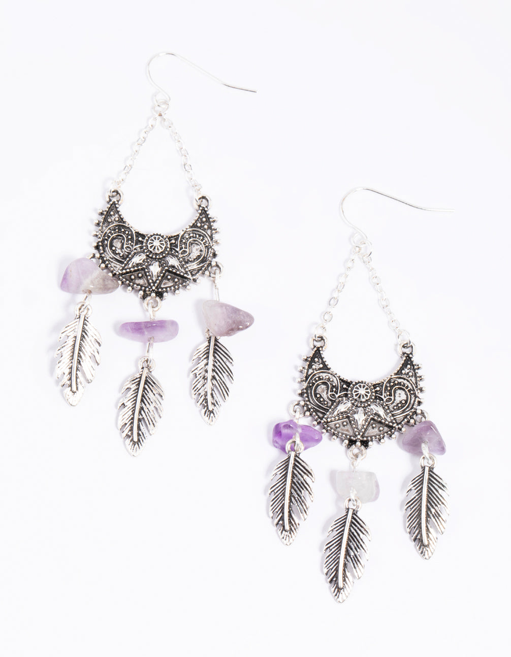 Keep it classic with stunning silver-toned jewellery! These lovely drops feature a charming fan design with genuine amethyst crystals. Amethyst is a stone of prosperity: put these on and see how you go!