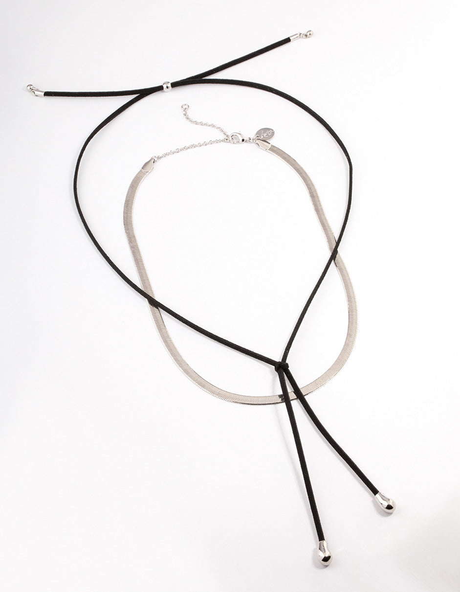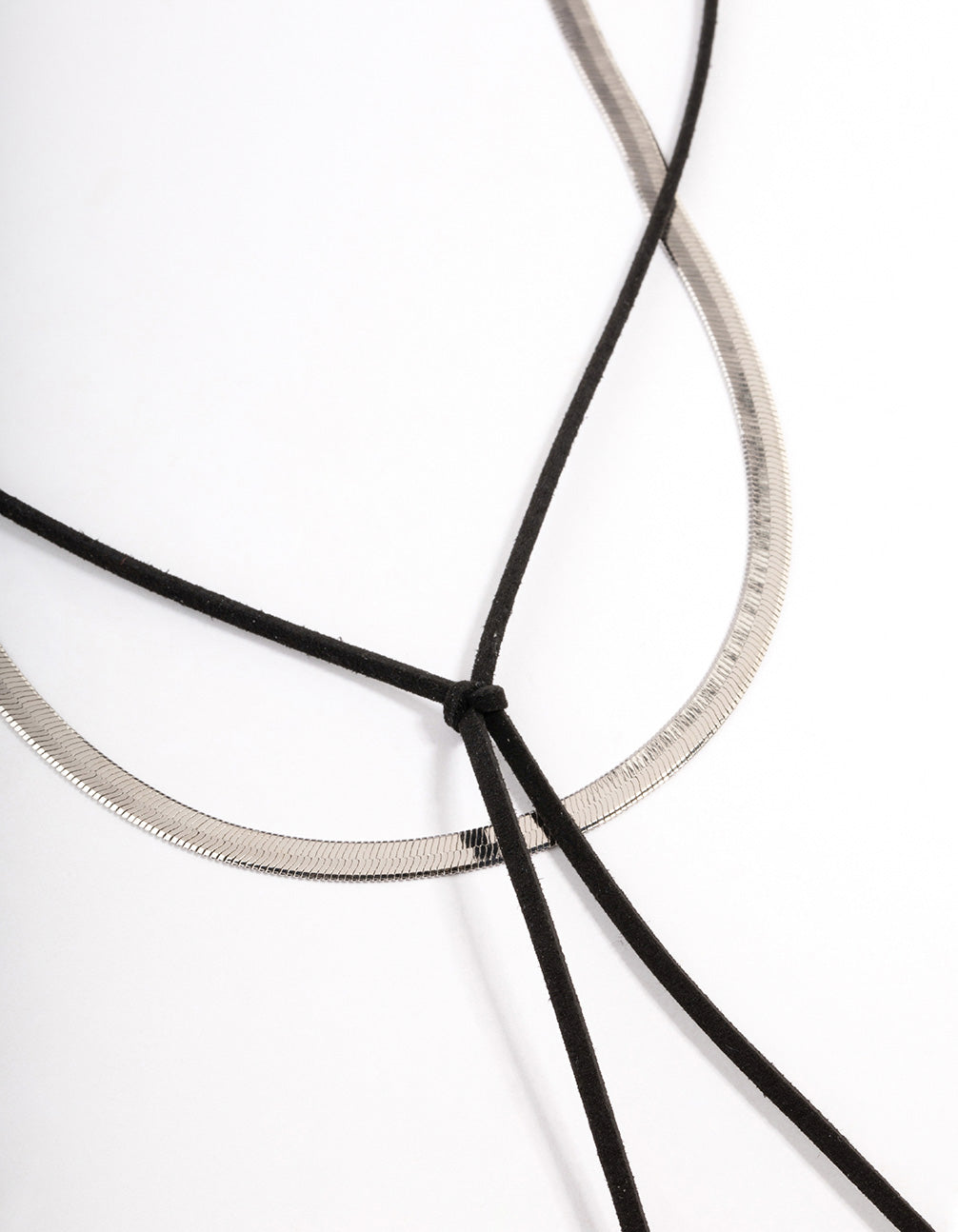 Silver Snake Chain Black Suede Cord Necklace Pack