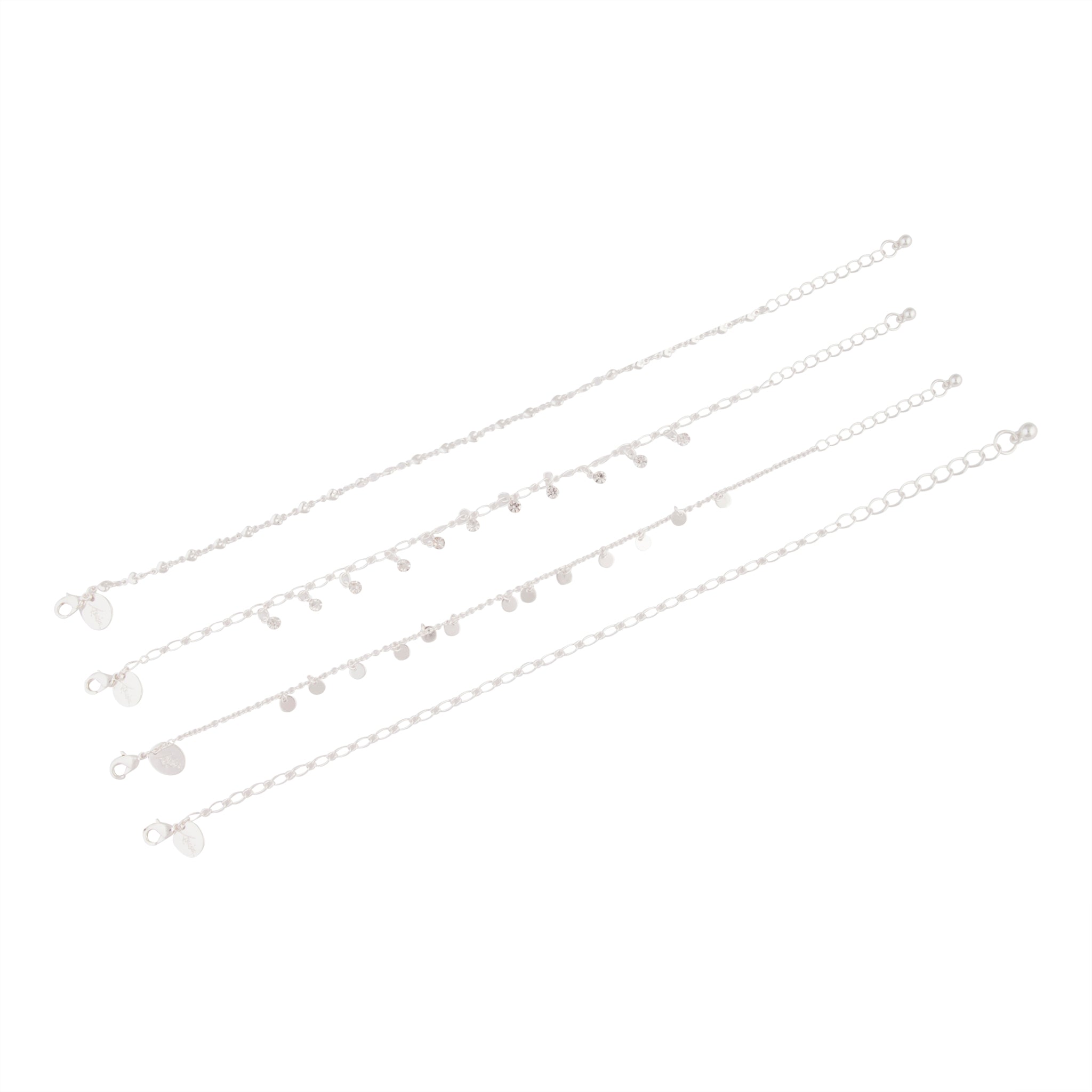 Elevate your look with this pack of silver tone diamante anklets. Wear a single style alone for an understated garden party look, or wear together to enhance your day time edit. Our anklets can be worn on the wrist or ankle and feature a chain extender for a custom-made fit.
