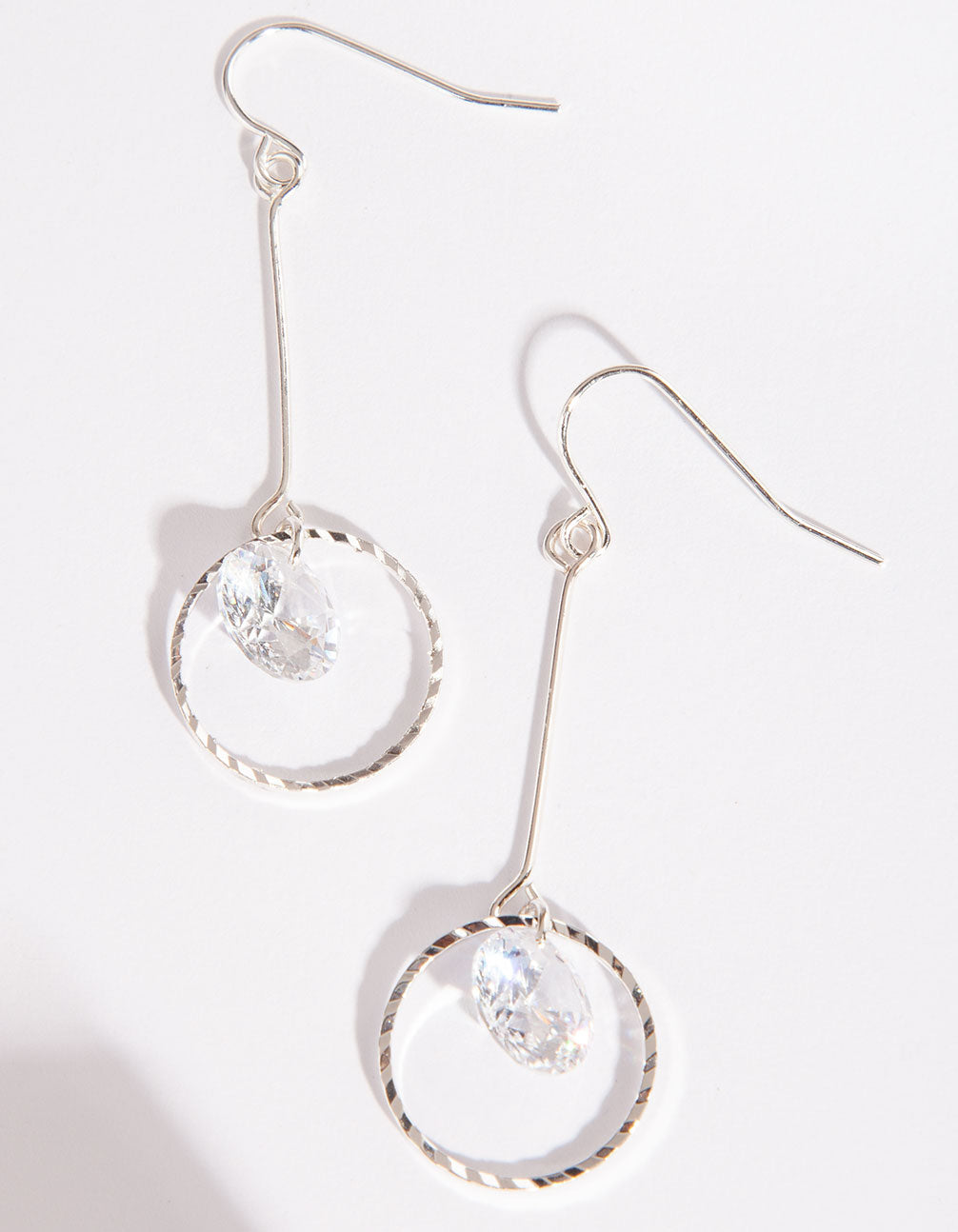 Cubic Zirconia stones provide a luxury look without the high-end price point. Add some sparkle to your daily life! These earrings feature a silver-toned circle drop design.
