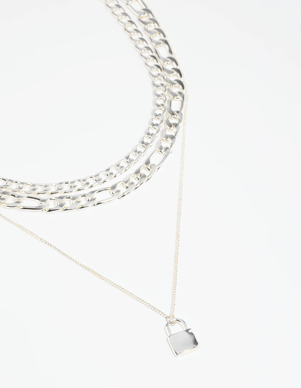 Silver Padlock Layered Necklace Silver Padlock Layered Necklace Silver Padlock Layered Necklace Silver Padlock Layered Necklace