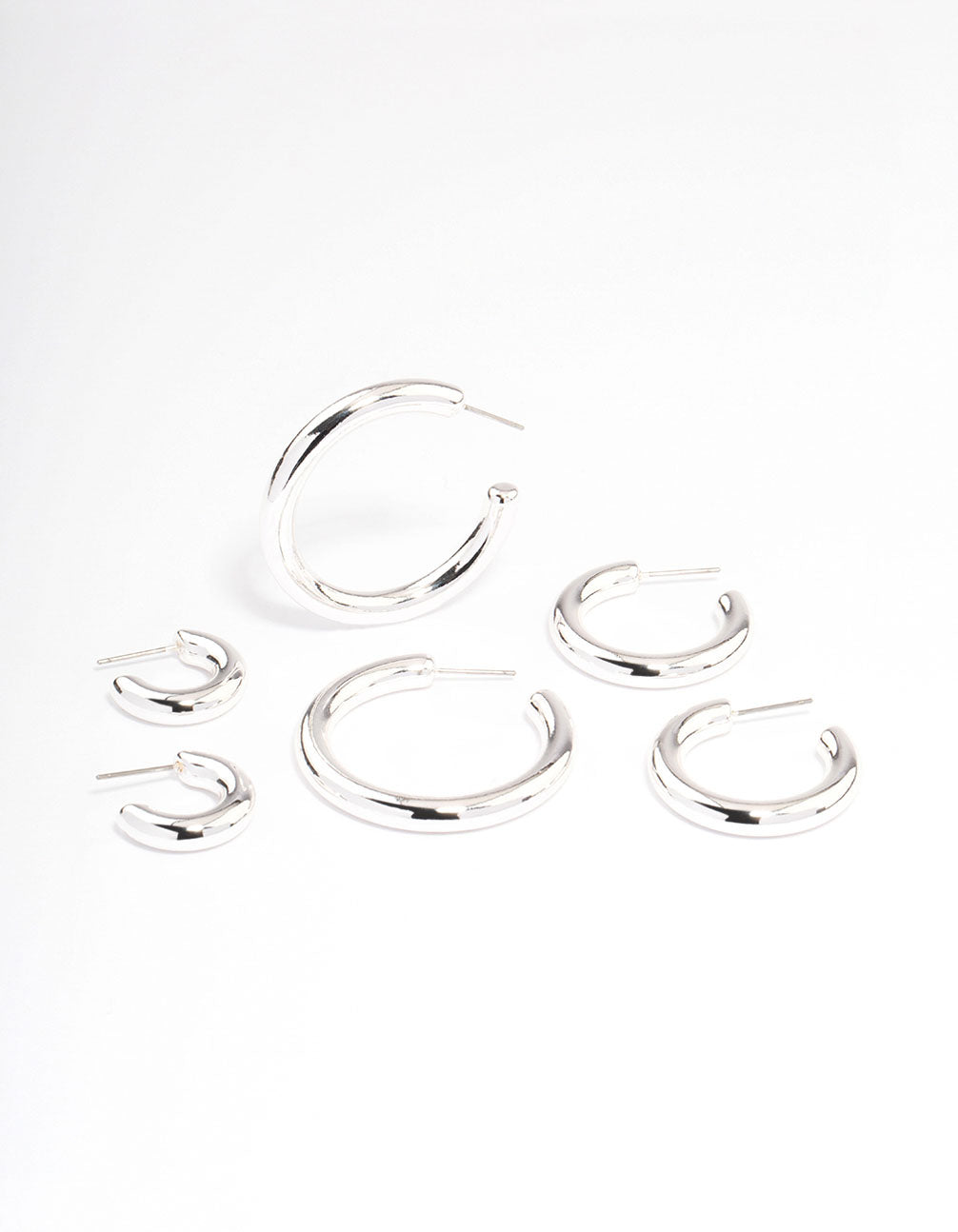 If silver is your setting of choice, discover must-have jewellery pieces from our Silver Essentials Collection. Curate a collection you love with our wide range of trending and timeless silhouettes, including this three-pack of mixed hoop earrings in varying sizes.