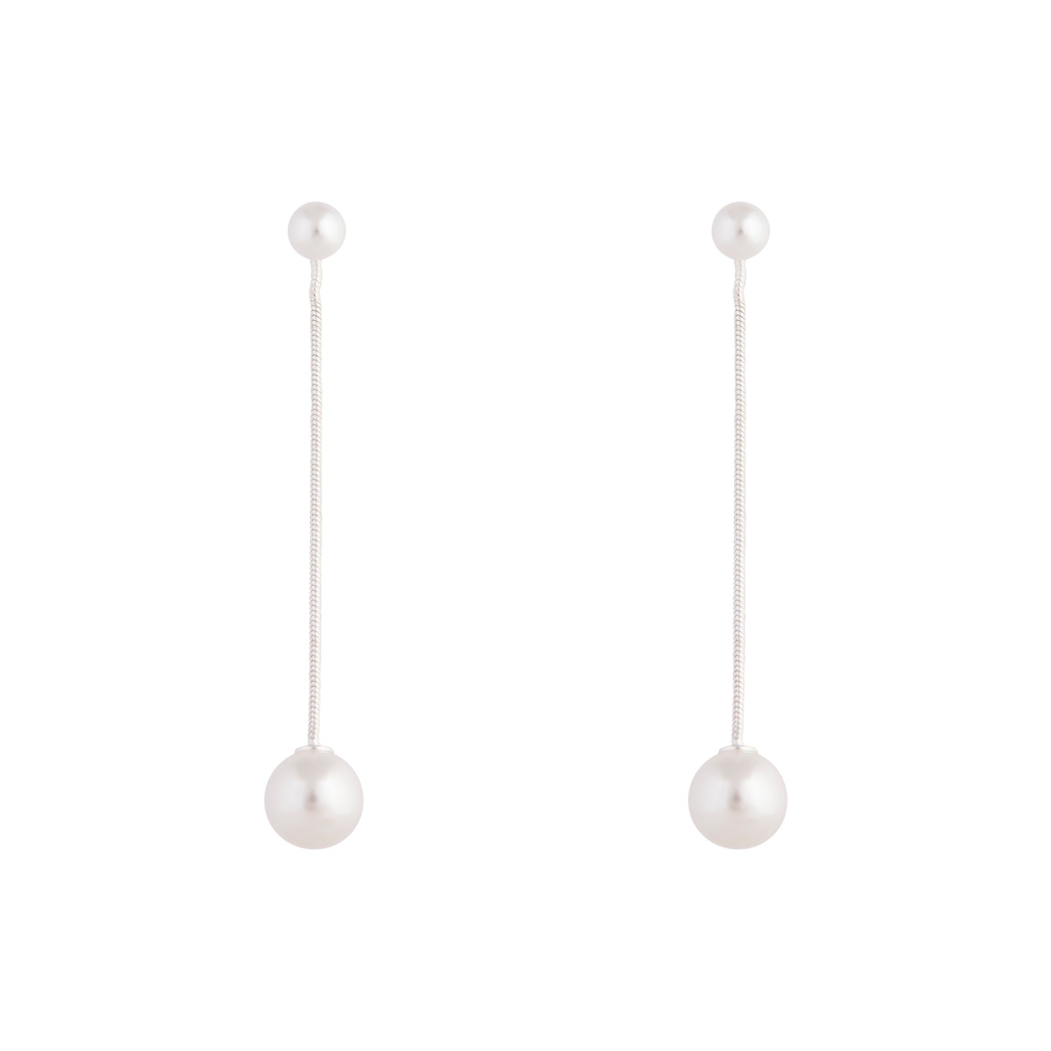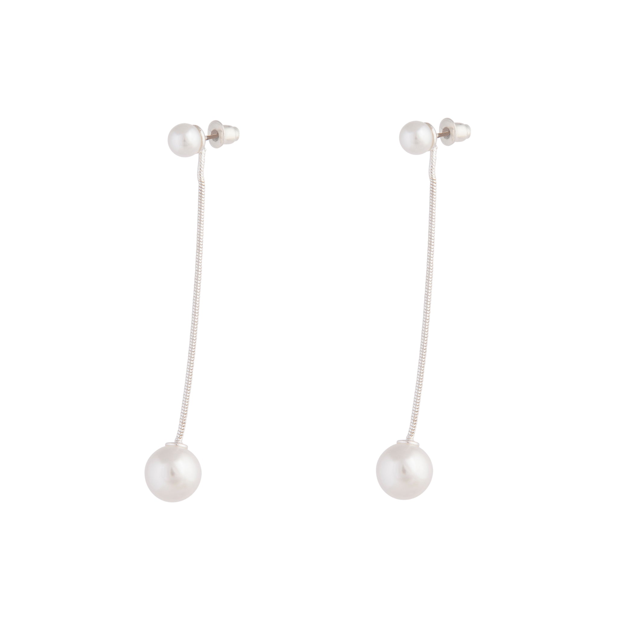 These earrings boast a double pearl chain design on a silver-toned setting.