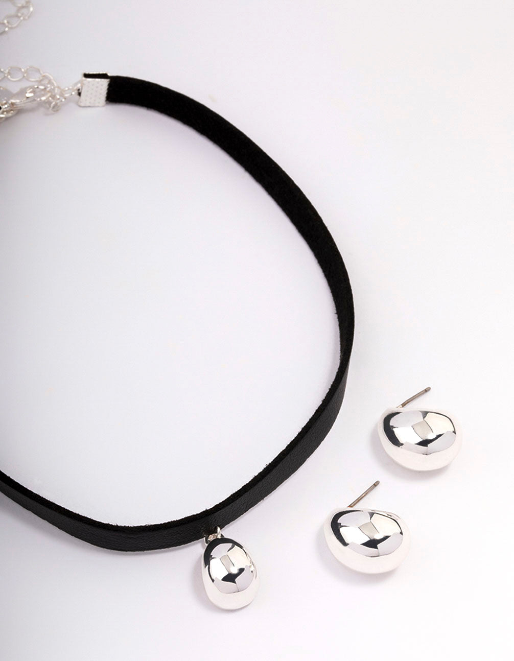 - This cohesive jewellery set contains a pair of silver teardrop earrings and matching pendant necklace.