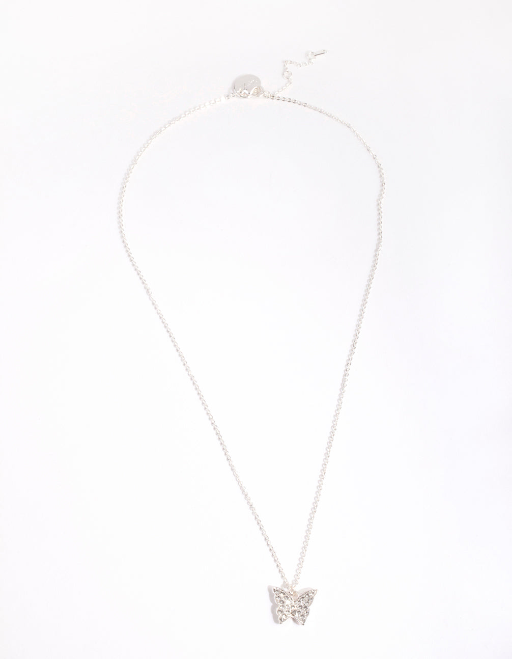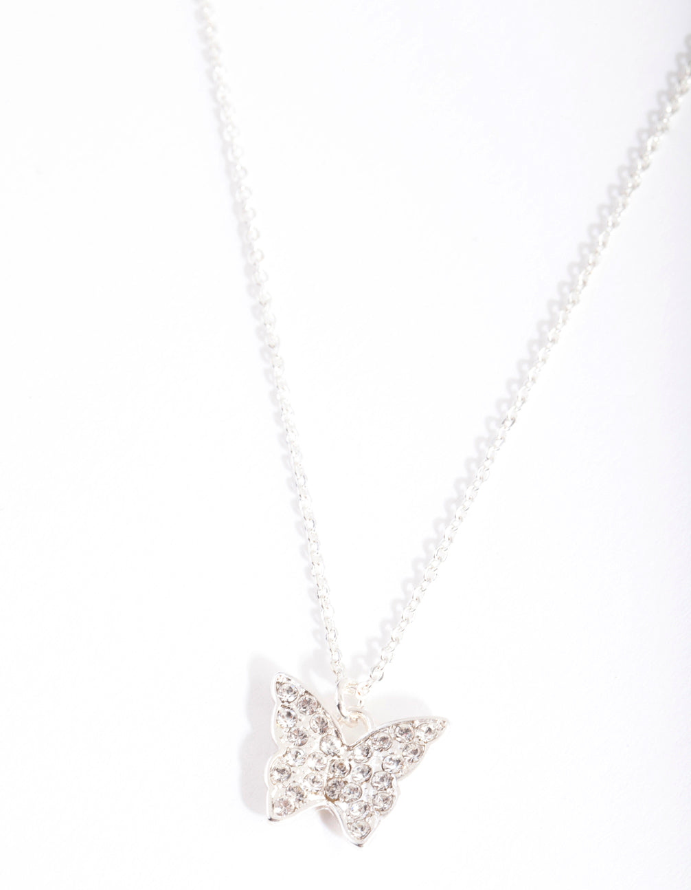Made using diamond-simulant crystals, this silver-toned necklace boasts a dainty butterfly pendant.