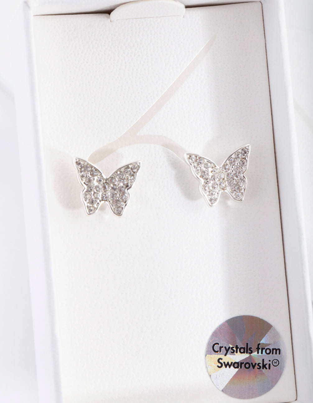 Made using diamond-simulant crystals, this silver-toned studs boast a crystal embellished butterfly design.