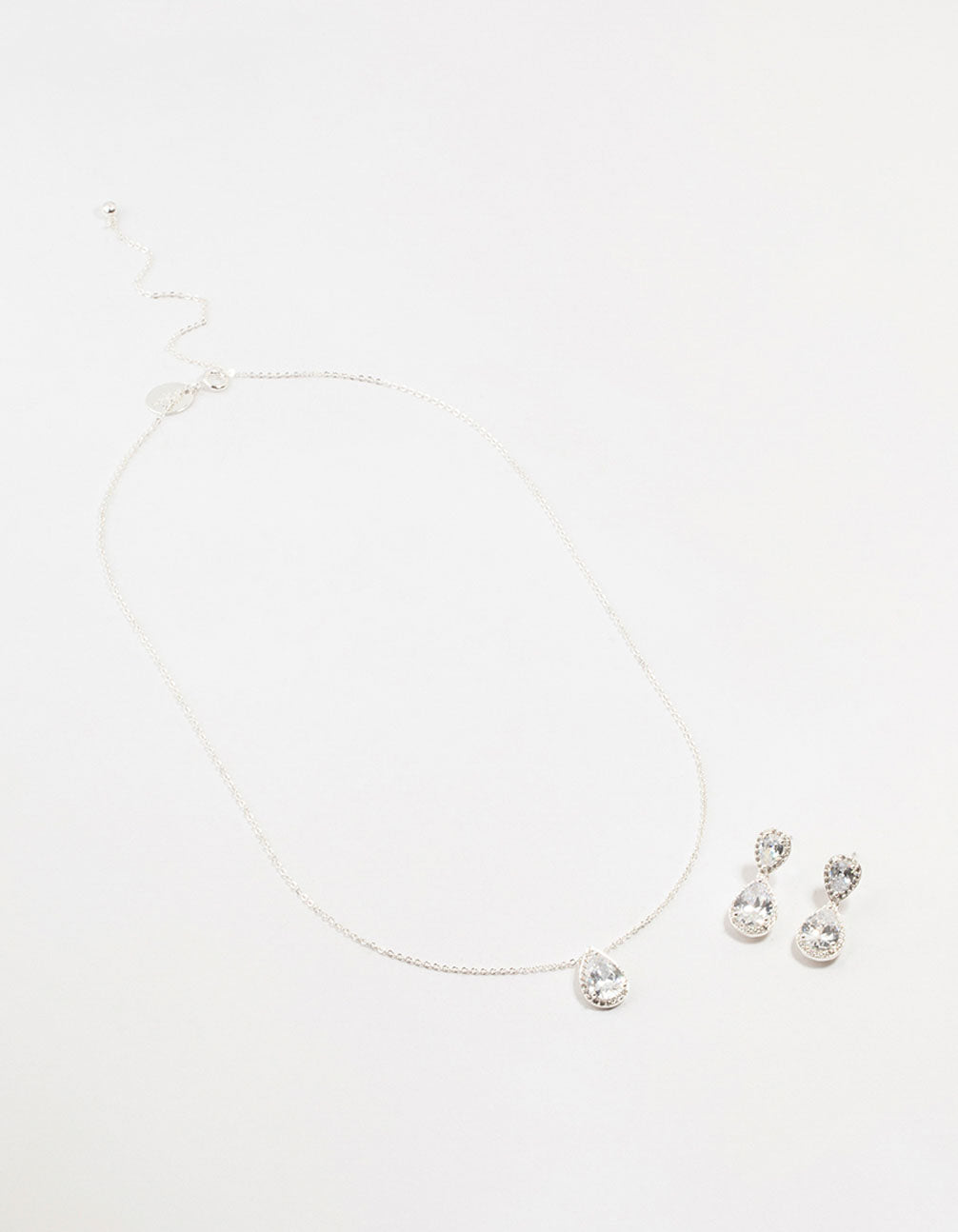 Add a little sparkle to your look with this Silver Diamante Teardrop Earrings & Necklace Set. This dazzling jewellery set features a timeless teardrop design, crafted in sleek silver tones with shimmering diamante accents. Perfect for weddings, formal events, or a glam night out, this set pairs effortlessly with an evening gown or a chic cocktail dress. Whether you're searching for a statement necklace, elegant drop earrings, or a full jewellery set to elevate your style, this duo has you covered. The teardrop shape adds a classic touch, while the silver finish ensures versatility. It's the ultimate go-to for adding a touch of elegance to any outfit!