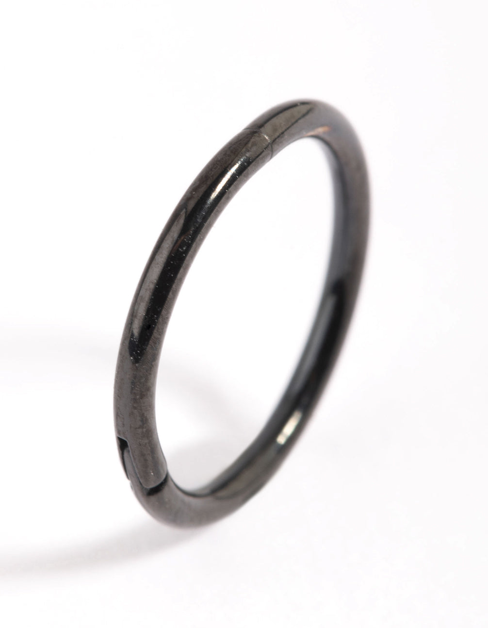 Express your individuality with Lovisa body jewellery! This clicker ring is designed for cartilage piercings. It's made with quality titanium, so it's suitable for sensitive skin. It's matte black, and measures 10mm in diameter. The gauge is 16/1.2mm.