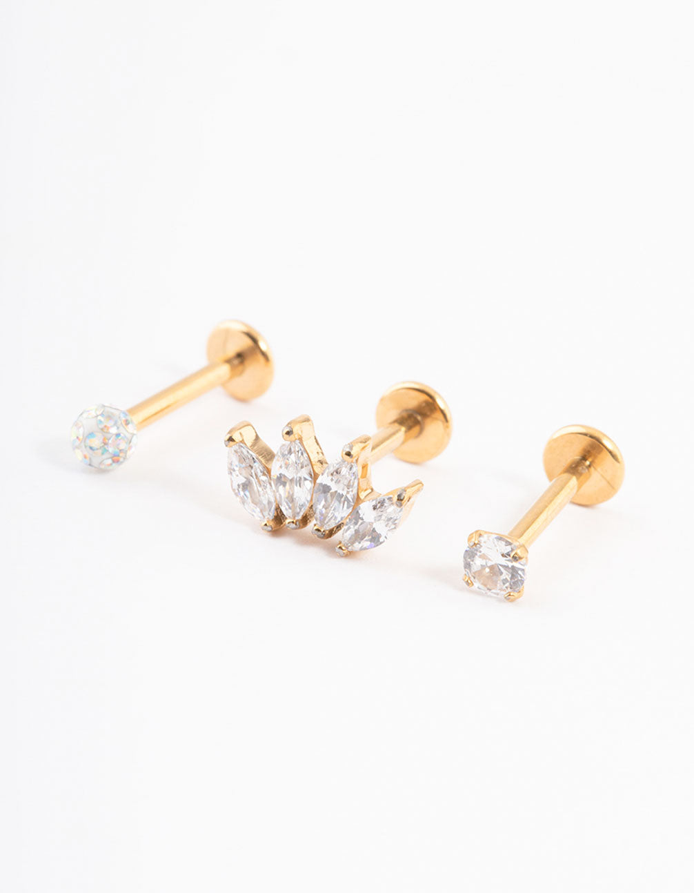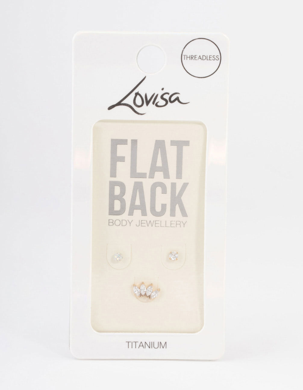 Gold Plated Titanium Pave Marquise Threadless Flat Back Pack