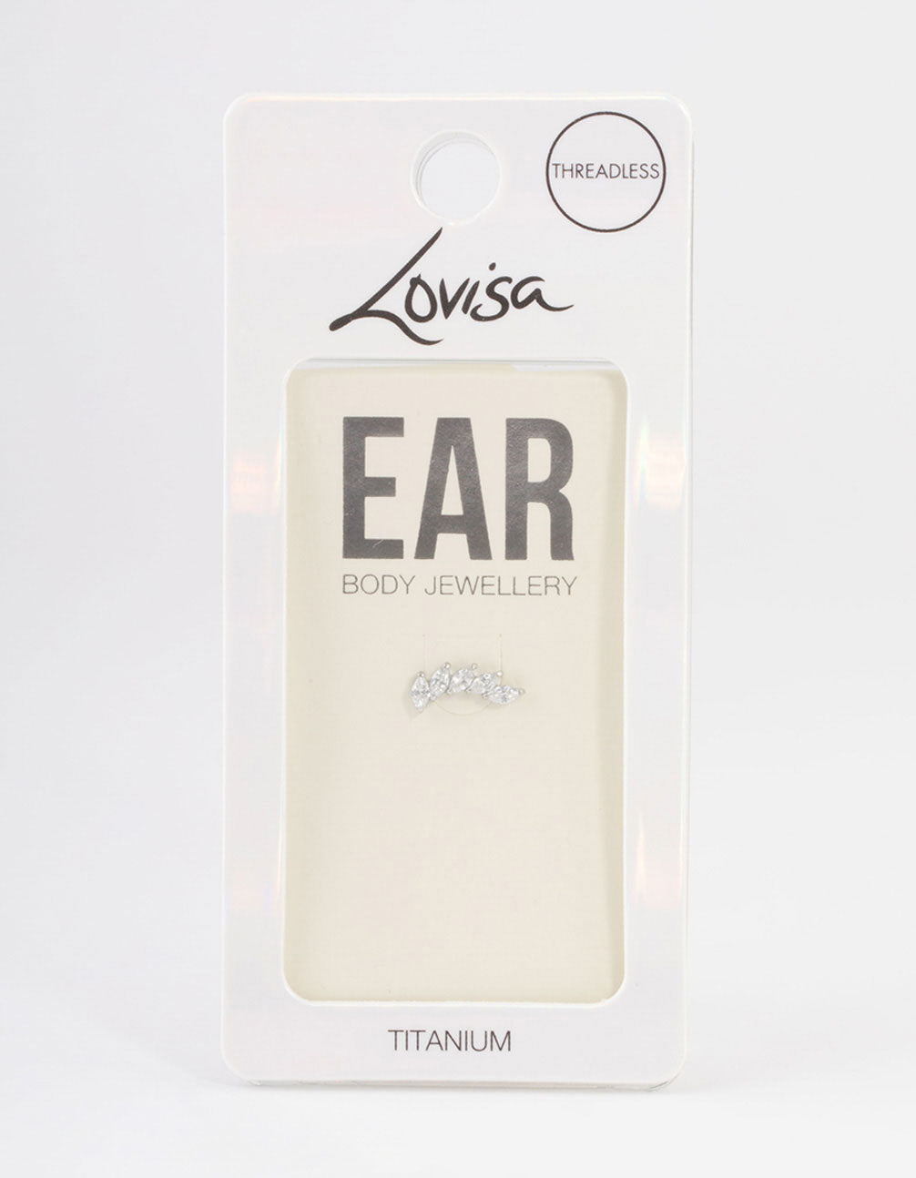 Embellished piercings are the latest trend to hit the runway! From versatile titanium studs, body piercings, to curated ear piercings — explore our range of threadless, titanium jewellery for a unique and personalised look. This fabulous titanium flat back stud features a cool cubic zirconia marquise crawler curved deign and also includes a threadless style, making it perfect for secure wear so it won't fall out but it can still be removed if you need.