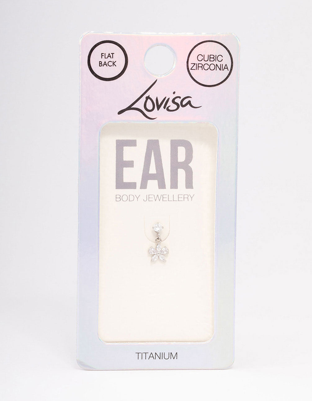 This titanium flatback features cubic zirconia embellishments for a touch of glamour. Flat Backs are perfect additions in your ear stack, style them in a helix, conch or tragus placement for a seamless look.