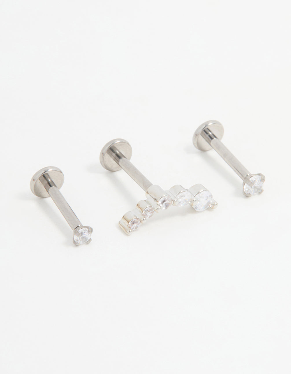 Titanium Cubic Zirconia & Ball Flat Back Studs 3-Pack