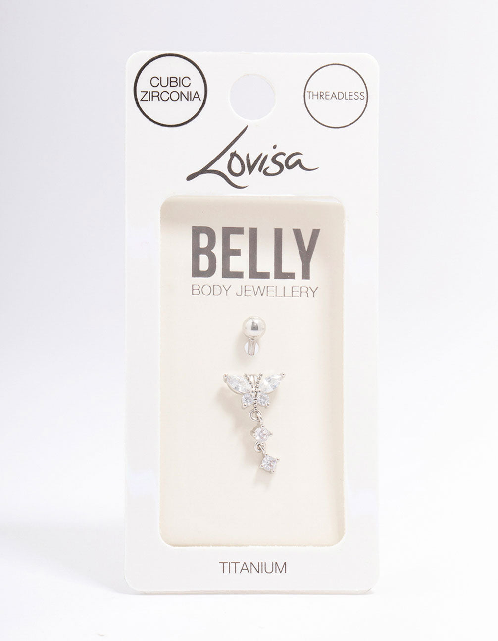 Titanium Cubic Zirconia Butterfly Drop Threadless Belly Bar