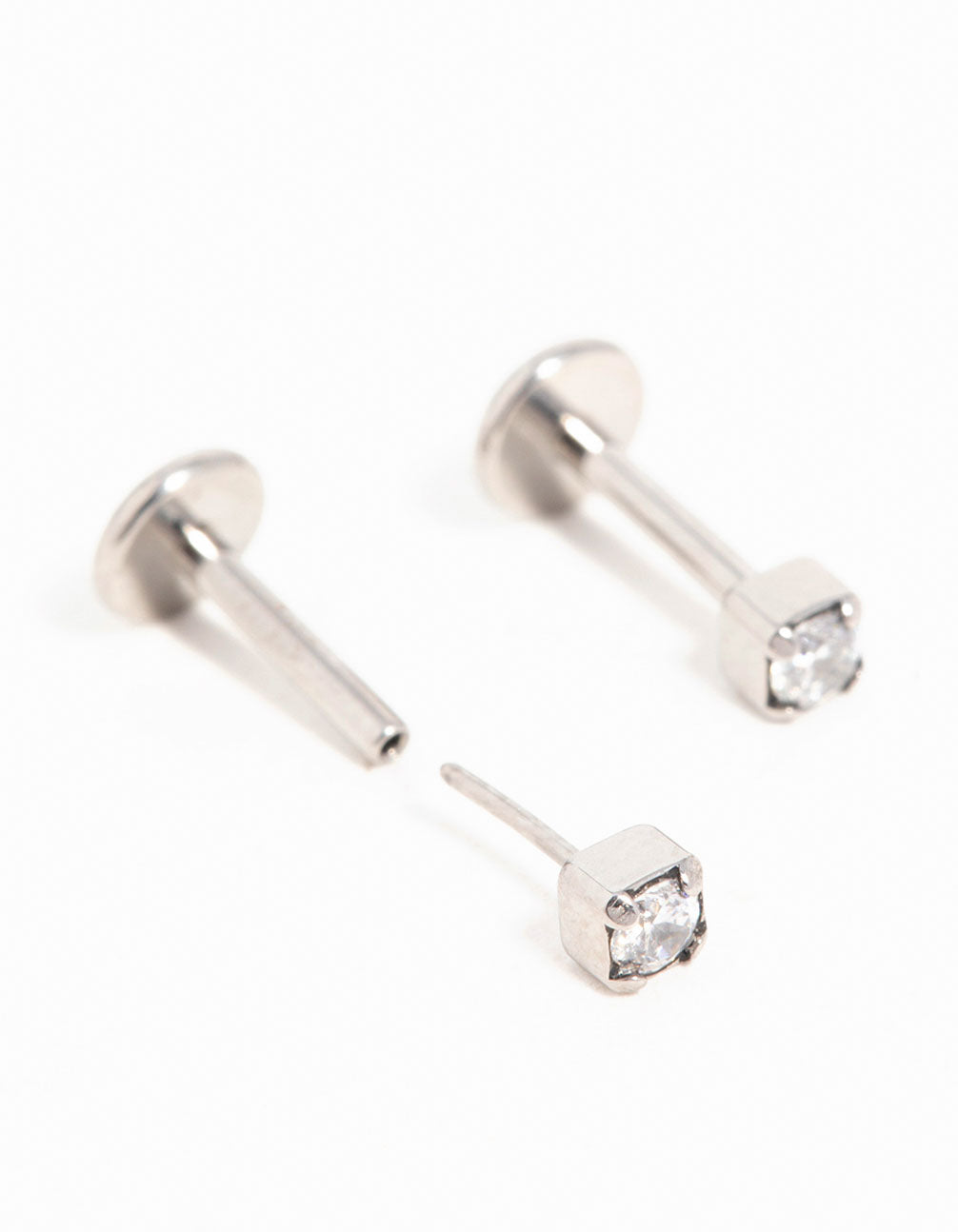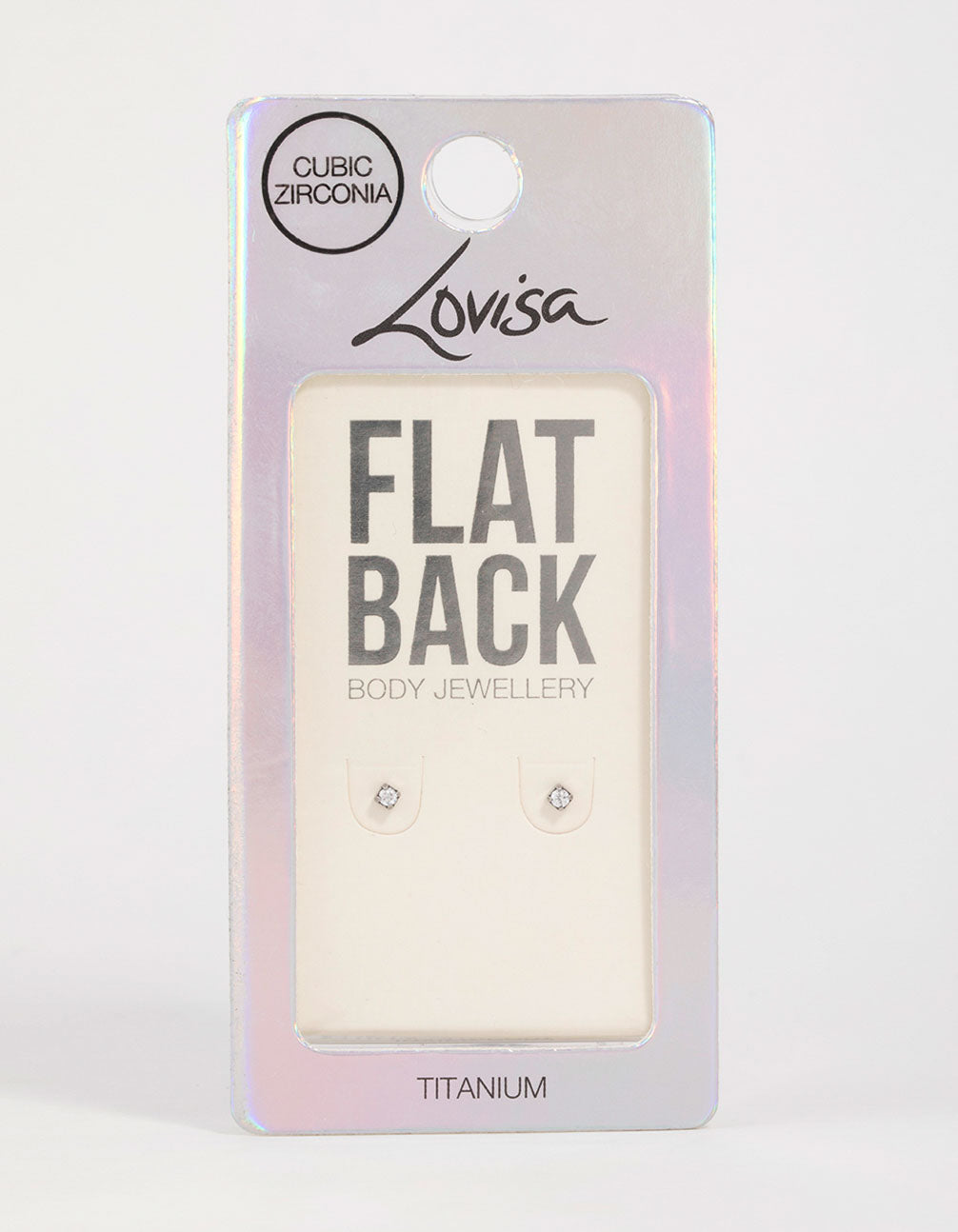 Titanium Cubic Zirconia Half Carat Flat Back Studs 2-Pack