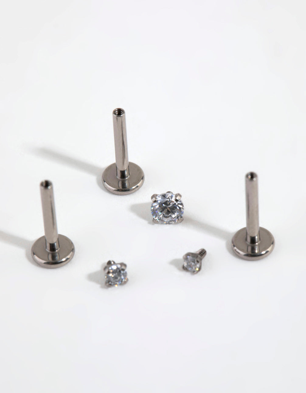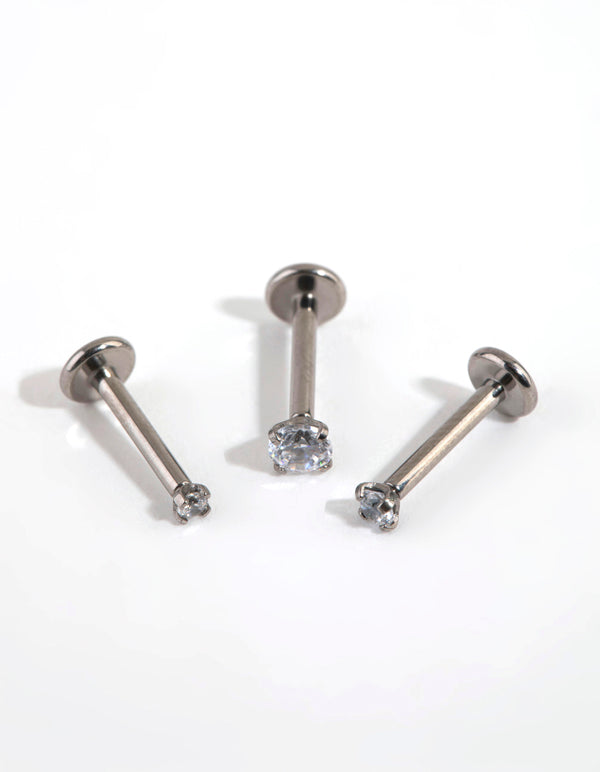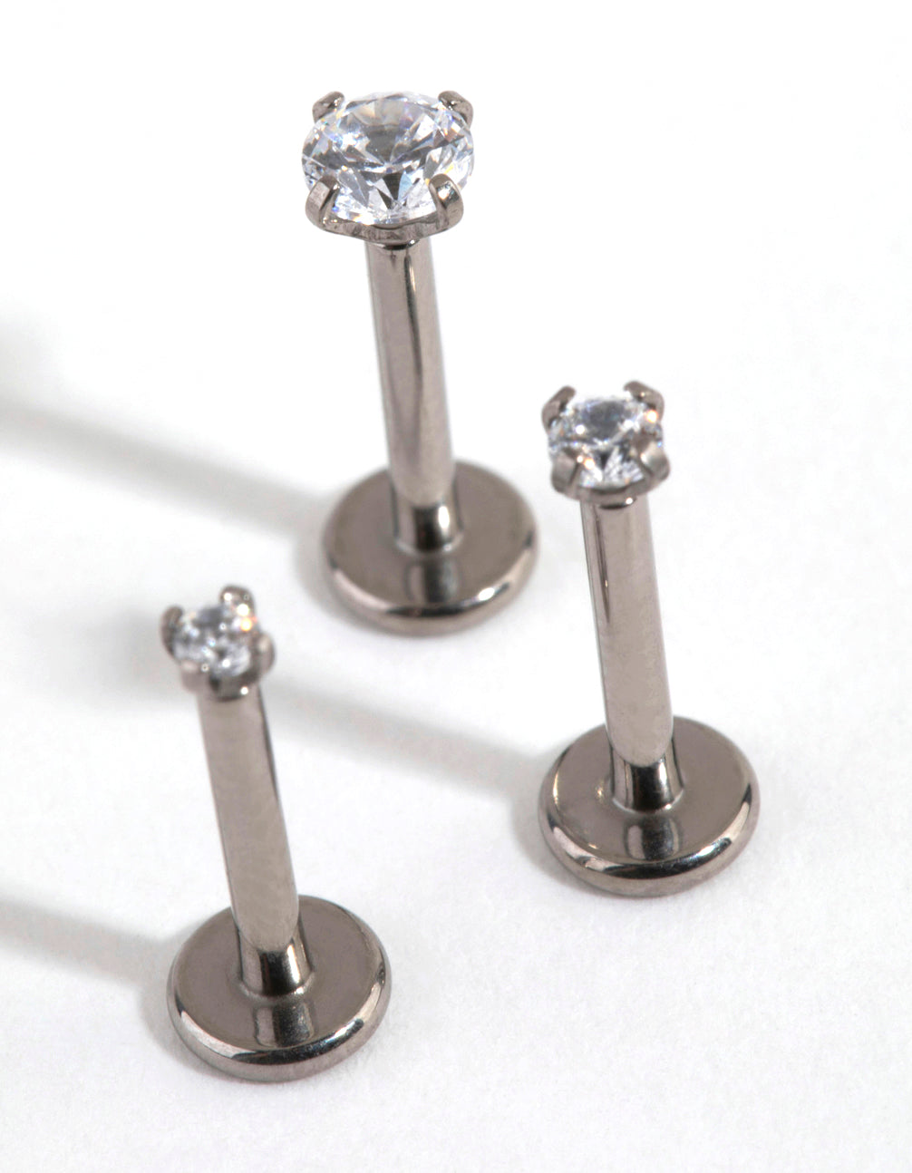 Express your individuality with Lovisa body jewellery! This earring pack includes three studs which have flat backs for your comfort. They are made with titanium, which is gentle on ears. Each stud measures 16G/1.2mm.