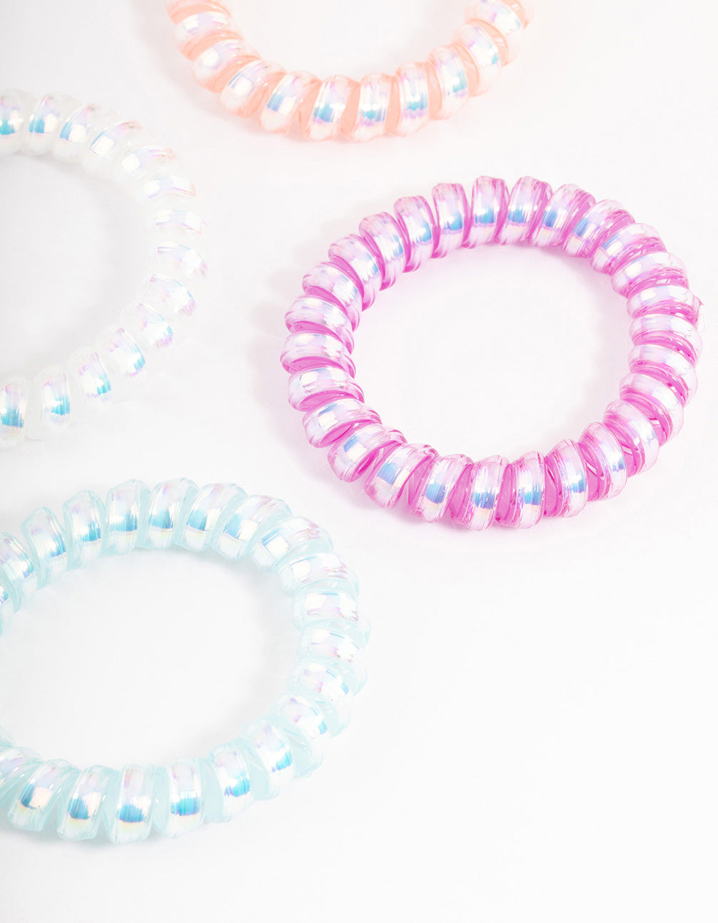- This pouch of pink and metallic coil hairbands are perfect for on the go! The coil, spiral design is great for minimising hairband creases.