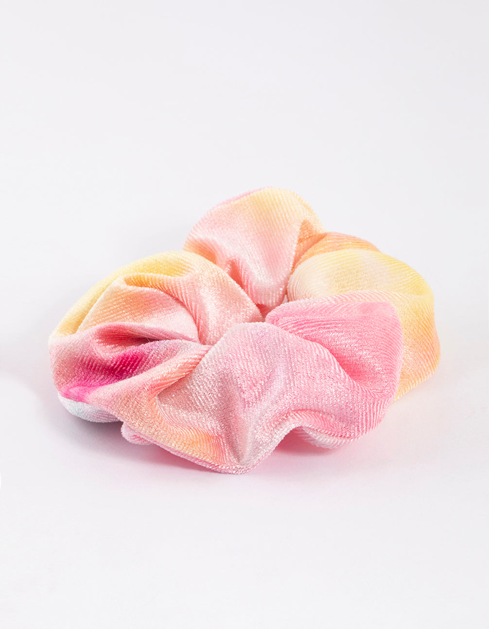 - This on-trend, '90s-inspired hair scrunchie features a velvet, pastel-coloured rainbow design for a vibrant look.