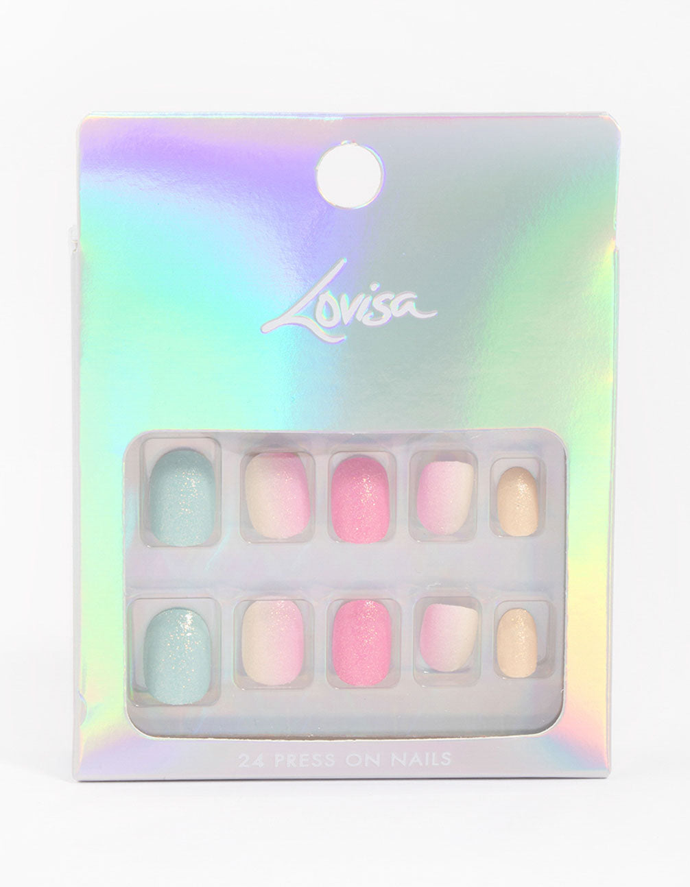• Tweens Rainbow Pastel Glitter Press On Nails - link has visual effect only