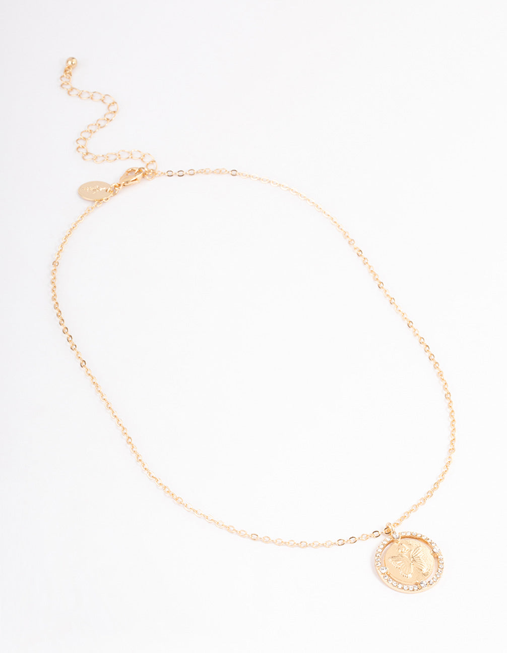 Gold Diamante Butterfly Disc Necklace