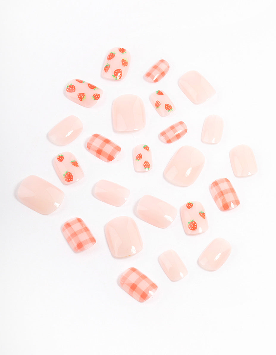 Tweens Strawberry & Checkered Press On Nails