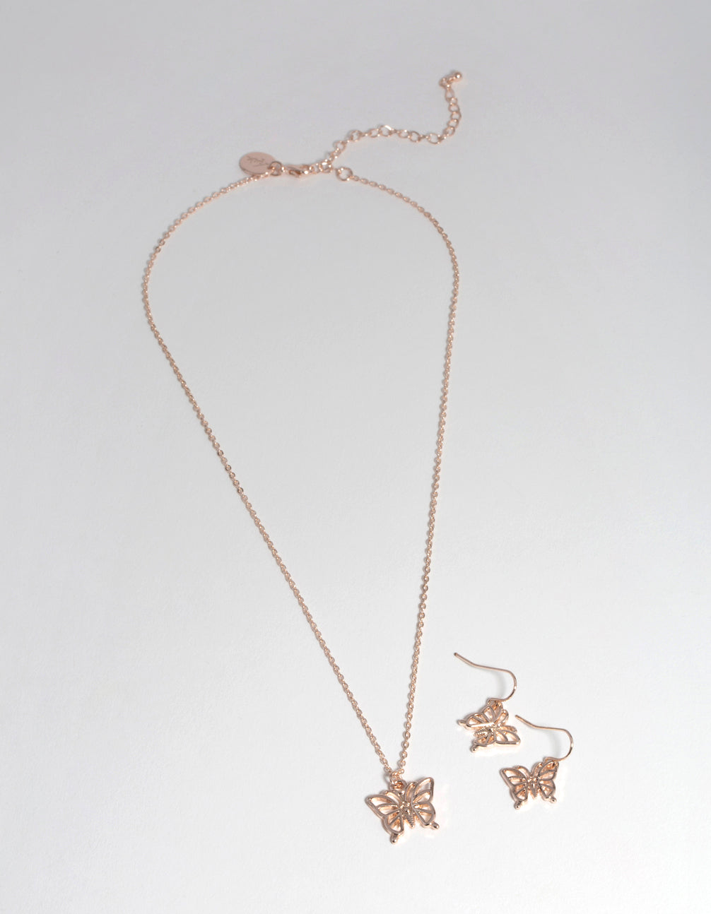 Rose Gold Butterfly Earring & Necklace Set Rose Gold Butterfly Earring & Necklace Set