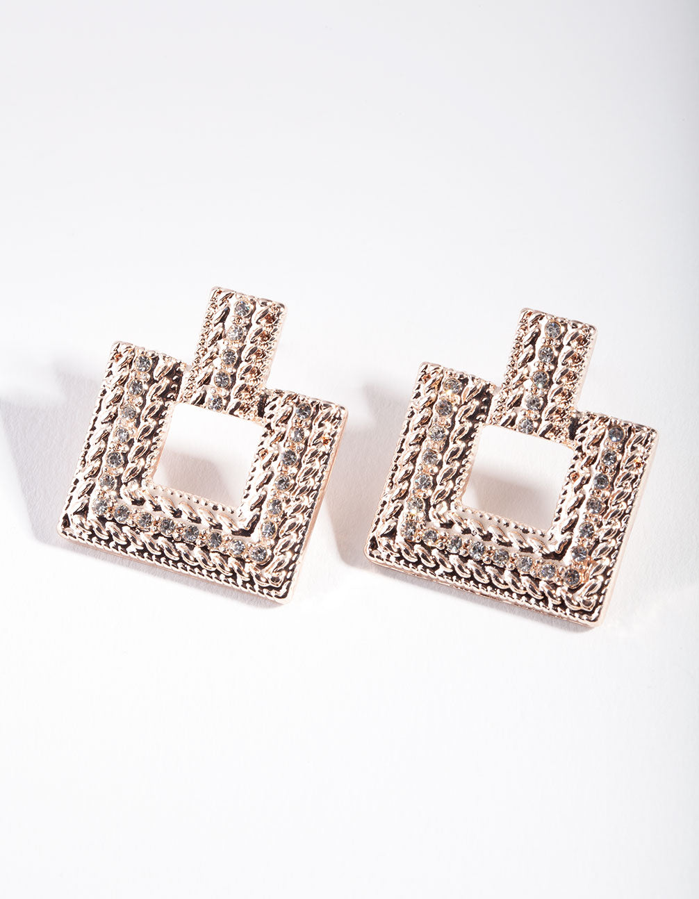 Complete your collection in this pair of rose-gold-toned earrings with mini diamante embellishments.