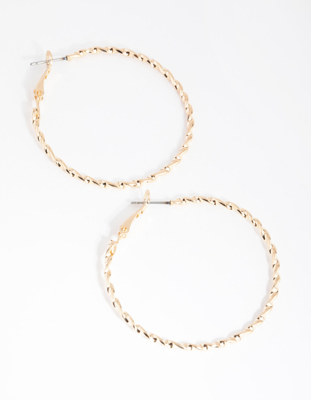 Almost any outfit can be elevated with a versatile pair of hoops! These ones gold toned, and feature a textured finish to ensure they shine when they hit the light. Wear them to add a classic finishing touch to your outfit.