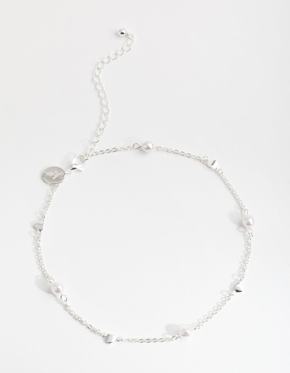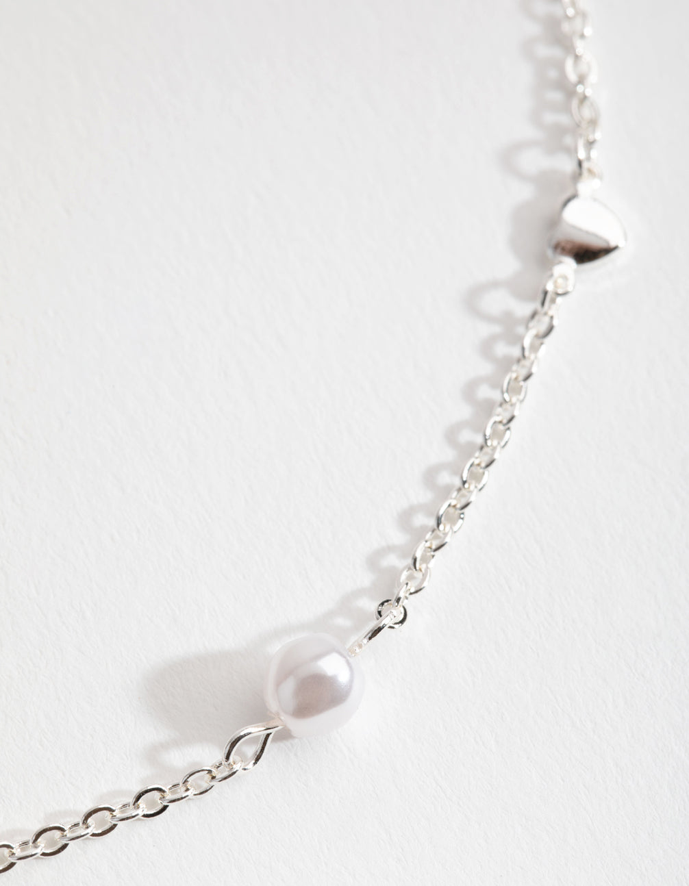 Silver Faux Pearl Heart Choker