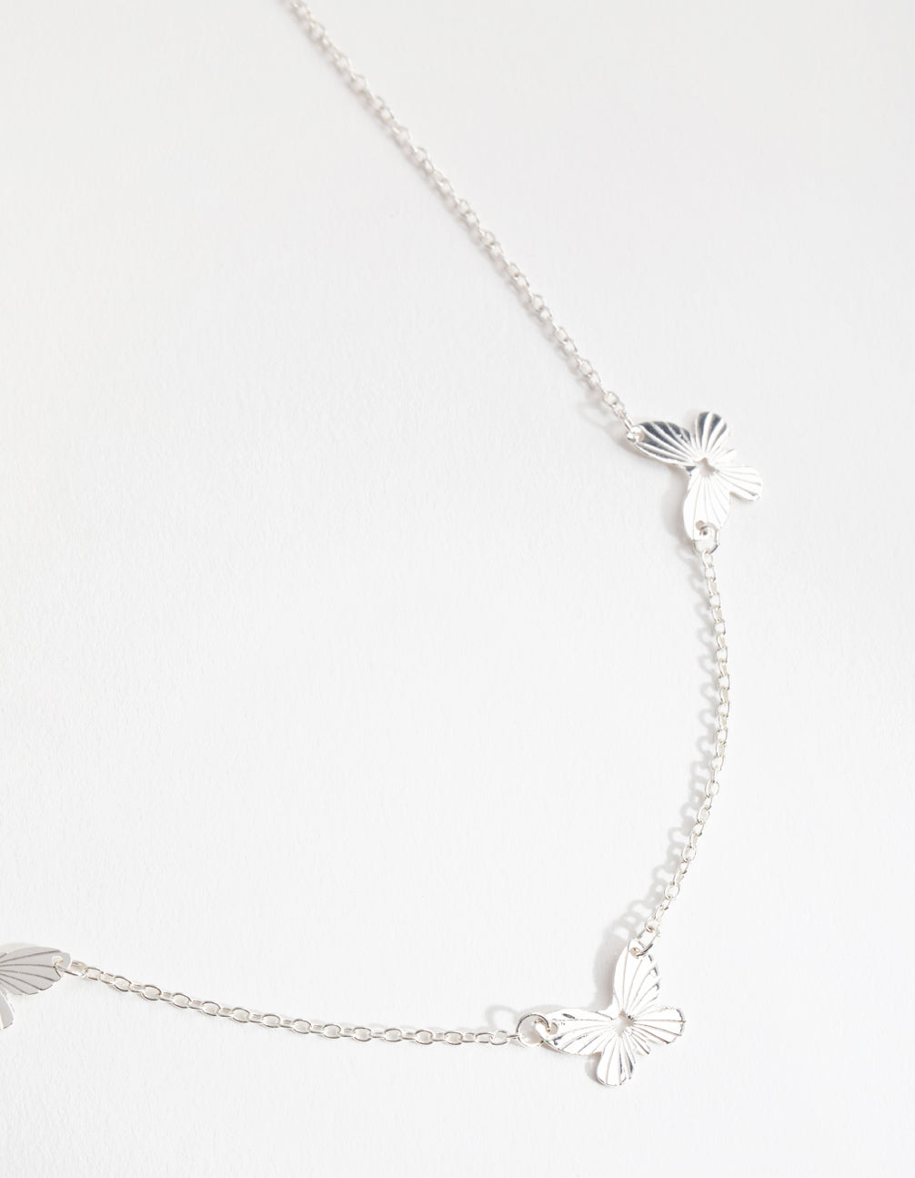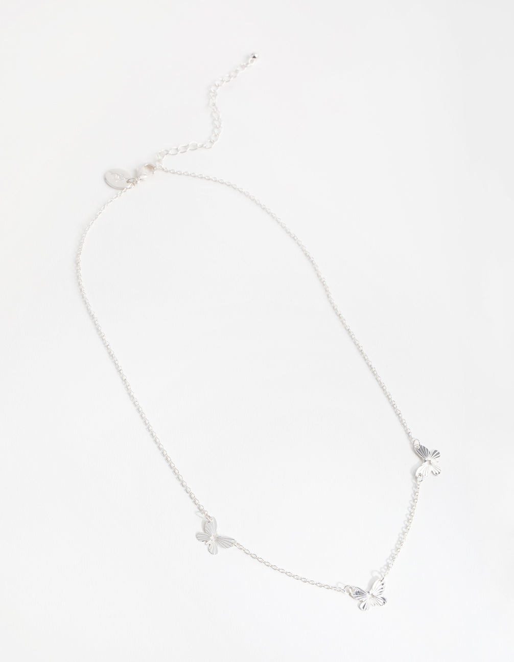 Delicate chains are versatile pieces that can easily be dressed up or down depending on the occasion. This silver-toned chain features a dainty row of three butterflies. Wear it on its own for an elegant look, or stack it with others for maximum impact.