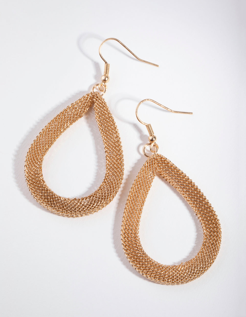 Your new party go-to, these drop earrings boast a large teardrop shape that is detailed with gold-toned mesh. Style with your favourite gold-toned accessories for maximum impact!