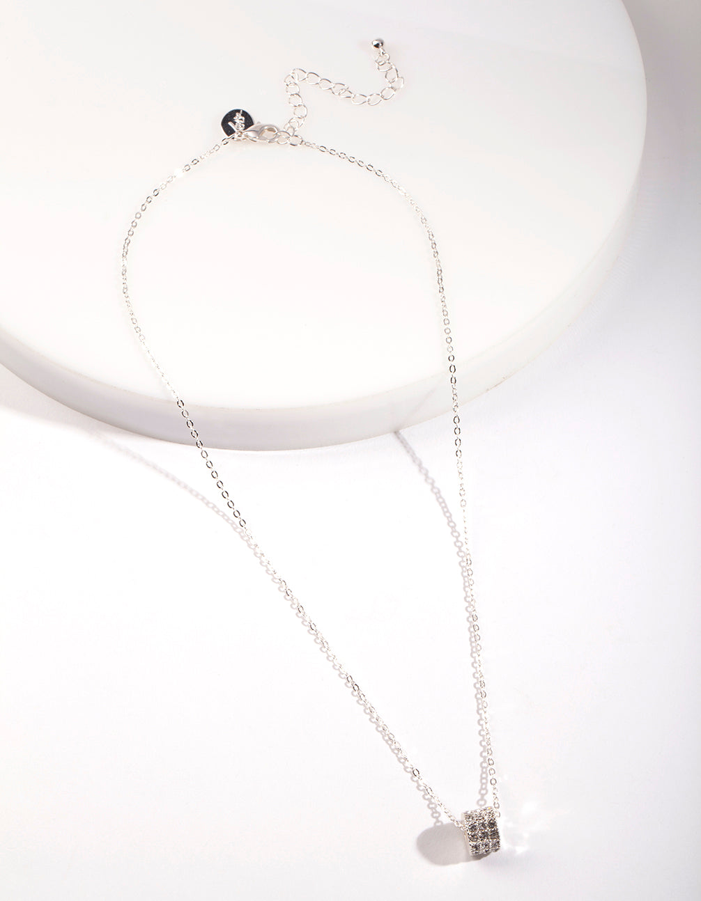 A fun fashion necklace is the perfect way to dress up any outfit. This style features a silver-toned setting with a diamante embellished pendant.