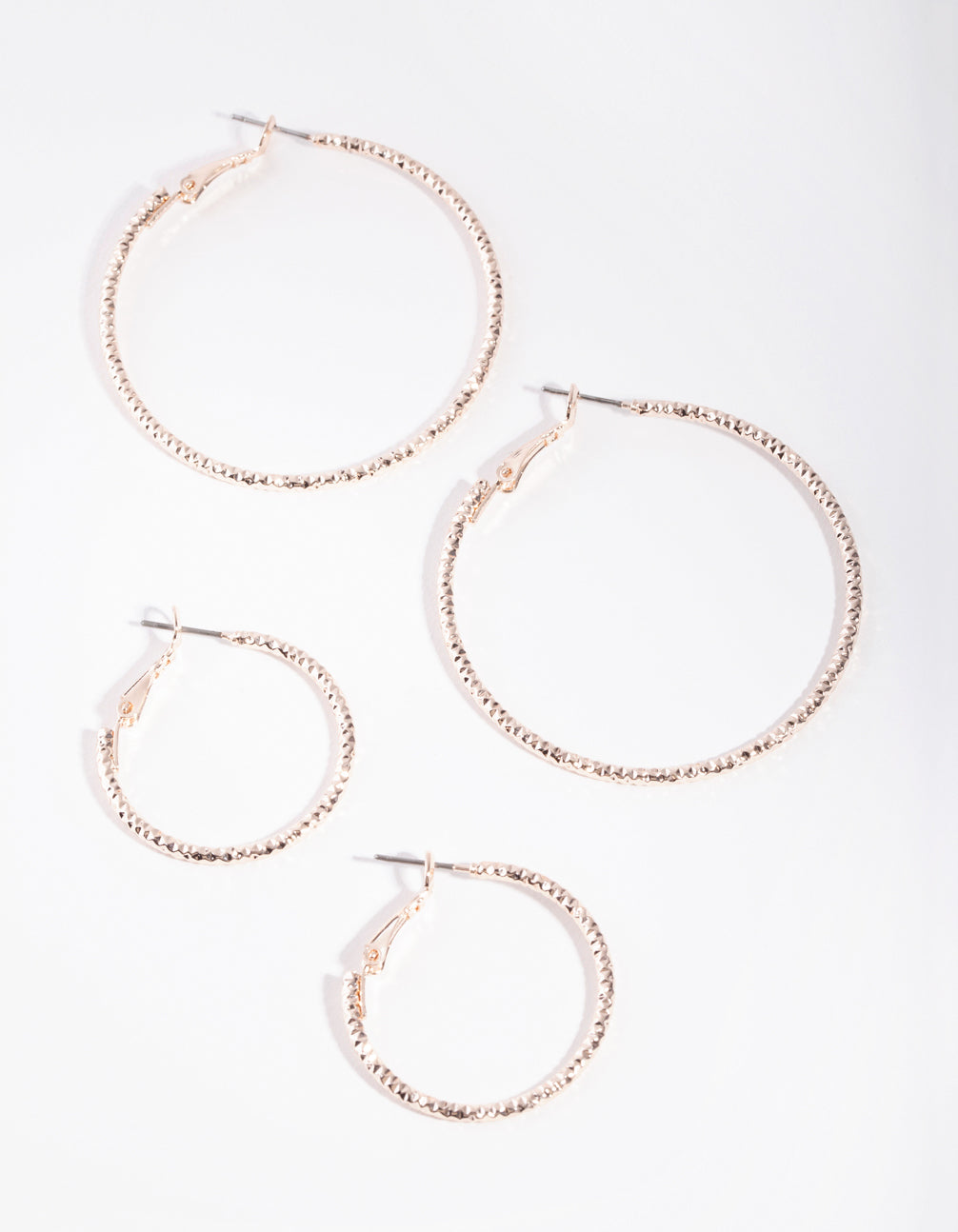 Rose Gold Hoop Diamond Cut 2-Pack Earring