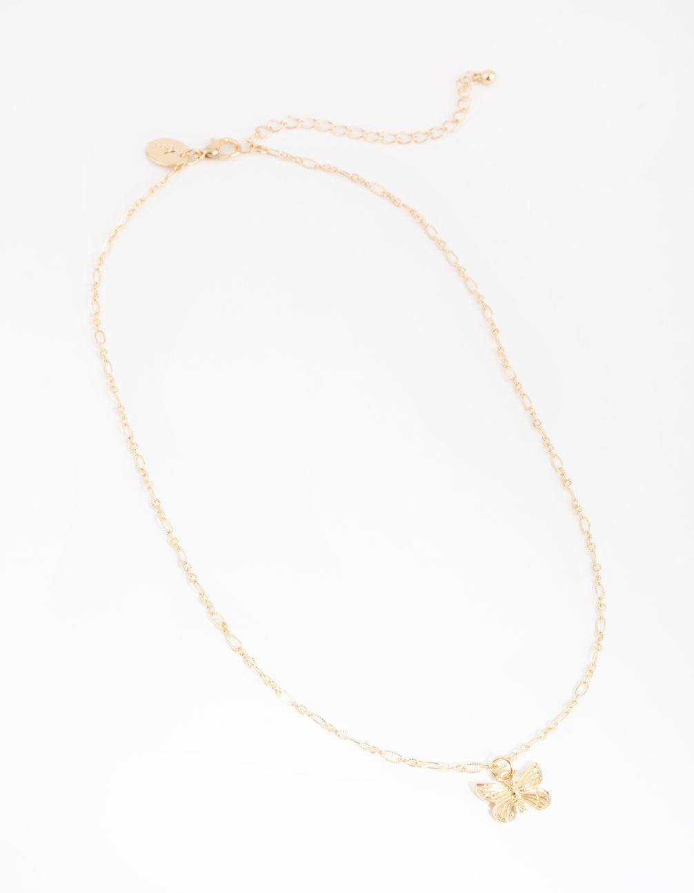 Gold Diamond-Cut Chain Butterfly Necklace Gold Diamond-Cut Chain Butterfly Necklace Gold Diamond-Cut Chain Butterfly Necklace