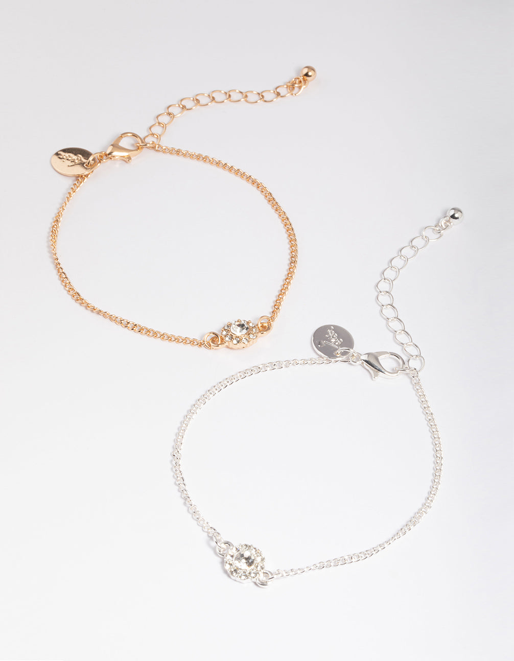 Mixed Metal Classic Diamante Circle Bracelet Pack